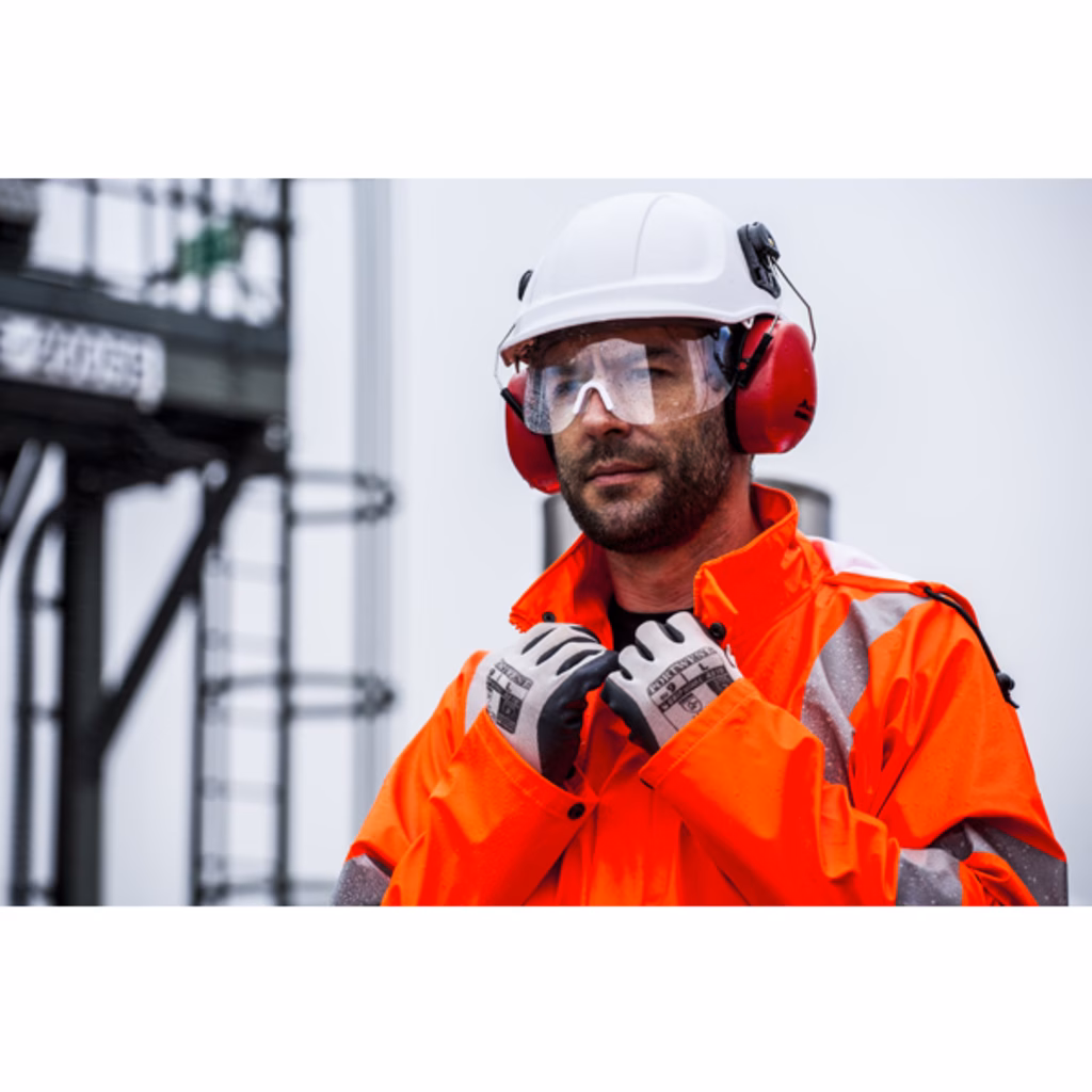 Casco dielettrico in ABS con visiera retrattile in policarbonato trasparente intercambiabile - sia la calotta che la visiera sono testati e certificati per proteggere da schizzi di metallo fuso - bardatura interna in tessuto regolabile con cremagliera e bandina antisudore - utilizzabile con temperature fino a -30°C. Sottogola a 2 punti di ancoraggio incluso - Certificazioni: EN 50365 Class:0 - EN 397 -30°C/+50°C, MM, LD, 440V - EN 166 1 B 9