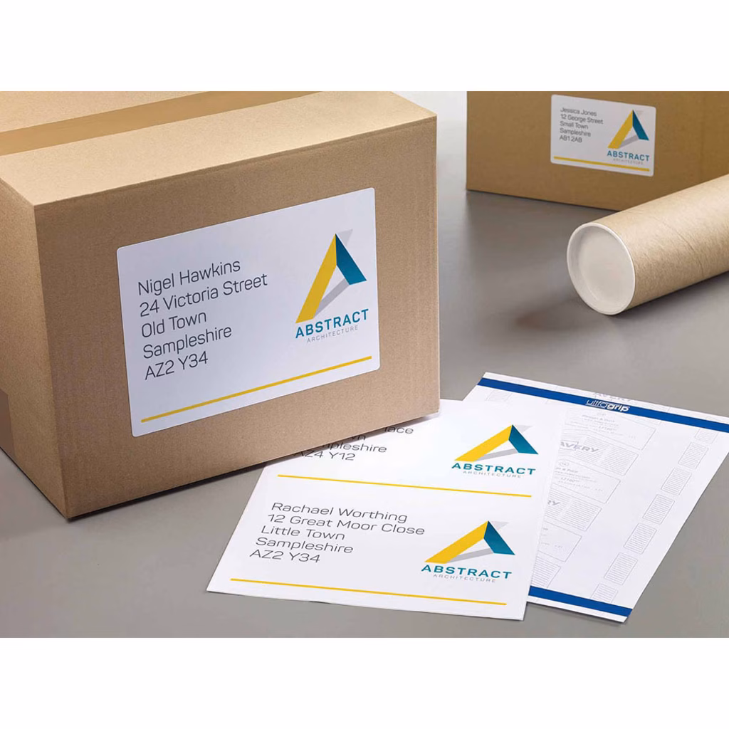 Questo prodotto è composto da materiale che proviene da foreste ben gestite, foreste certificate FSC® e da altre fonti controllate. La tecnologia Ultragrip, la speciale banda blu presente sul foglio di etichette, permette di alimentare i fogli nella stampante in modo allineato e senza inceppamenti per stampe perfette e senza nessuno spreco. Le etichette sono facili da rimuovere dal supporto grazie alla tecnologia QuickPEEL che consente di strappare il foglio lungo una microperforazione liberando così un lato dell'etichetta. Crea il tuo progetto di stampa in pochi clic con il software gratuito Crea e Stampa Online di Avery.