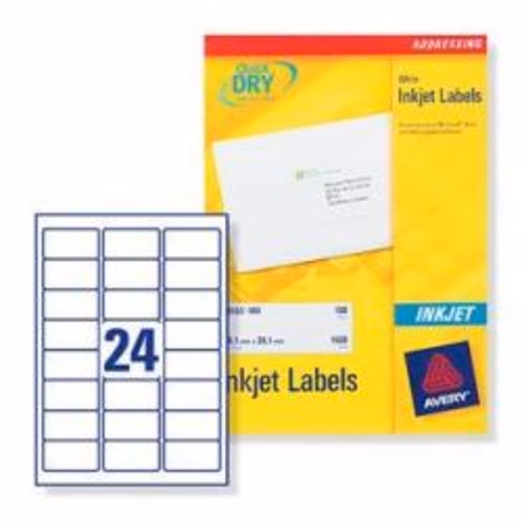 Etichette adesive in carta bianca, 63,5x33,9mm, 24 etichette per foglio, 25 fogli per confezione