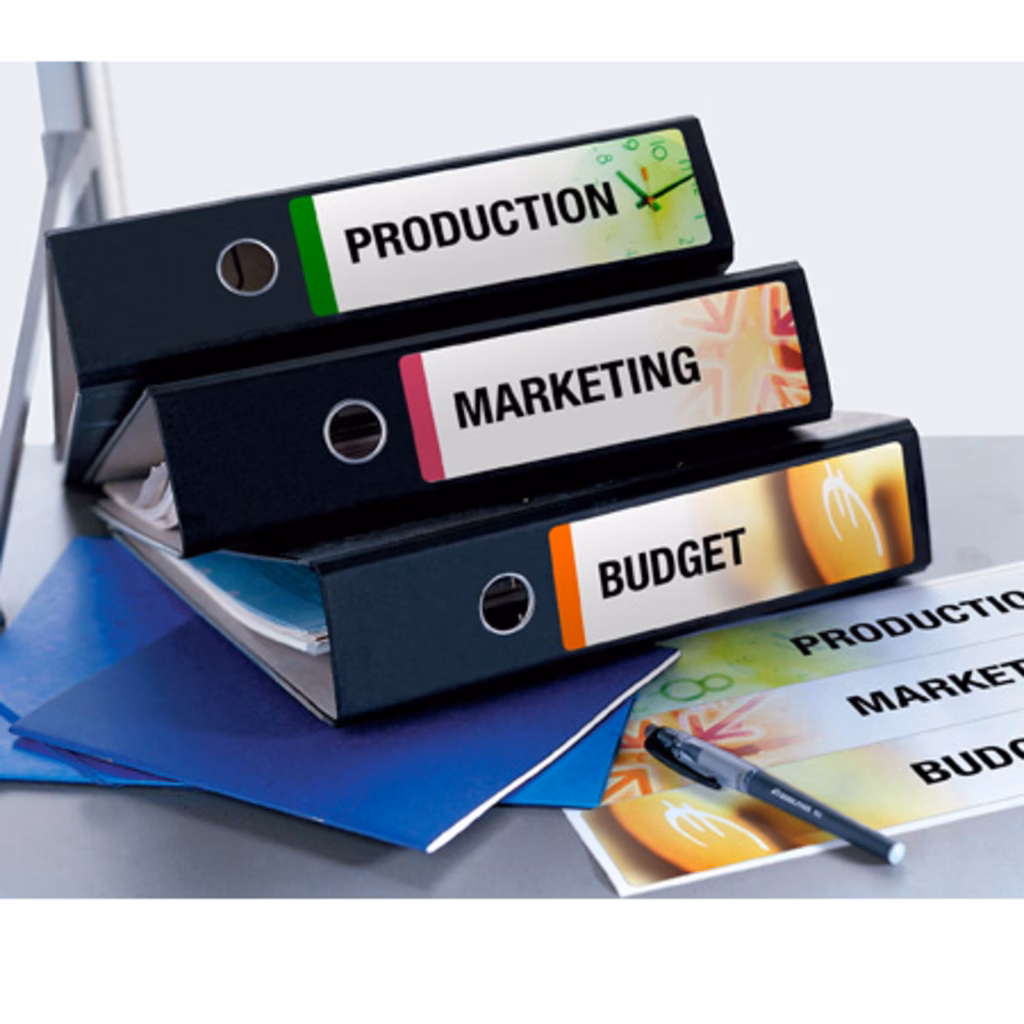 Etichette adesive in carta bianca coprente per raccoglitori, 38x192mm, 7 etichette per foglio, 25 ff