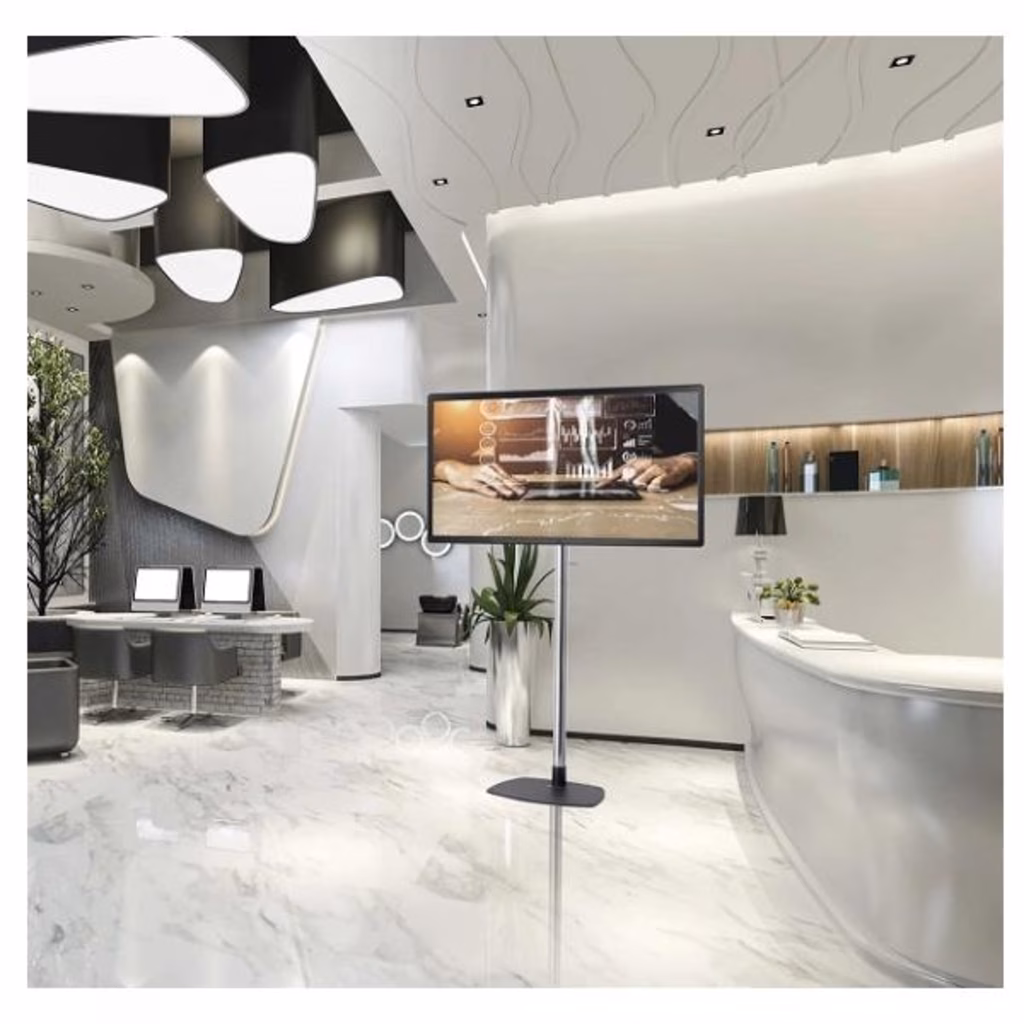 E' una soluzione perfetta per presentare lo schermo in modo elegante e, allo stesso tempo, sicuro.            STD01 è universale, grazie all'ampia gamma di regolazioni in altezza, può essere facilmente adattato a molti tipi di schemi disponibili sul mercato. Una base solida e stabile con possibilità di fissaggio a pavimento lo rende perfetto per diversi ambienti, dalle hall degli hotel alle sale conferenze.                    La gestione integrata dei cavi rende l'installazione finale pulita e ordinata, e pertanto STD01 è perfetto per applicazioni professionali o commerciali.
