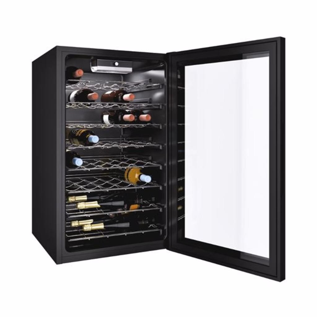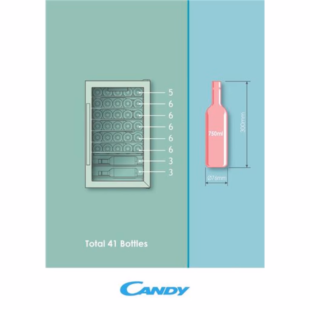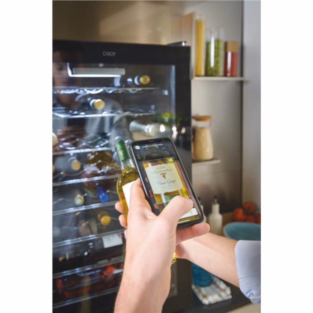 Candy DiVino CWC 150 EM/NF Cantinetta vino con compressore Libera installazione Nero 41 bottiglia/bottiglieCandy DiVino CWC 150 EM/NF. Posizionamento dell'apparecchio: Libera installazione, Colore struttura: Nero, Colore interno: Nero. Capacità bottiglie: 41 bottiglia/bottiglie, Tipo di prodotto: Cantinetta vino con compressore, Classe climatica: N-ST. Tipo di lampada: LED, Applicazioni per il controllo supportate: hOn. Classe efficienza energetica: G, Consumo energetico annuo: 143 kWh, Tensione di ingresso AC: 220 - 240 V. Larghezza: 490 mm, Profondità: 545 mm, Altezza: 845 mm