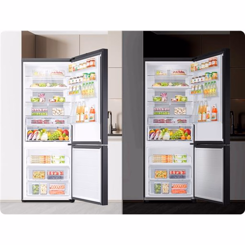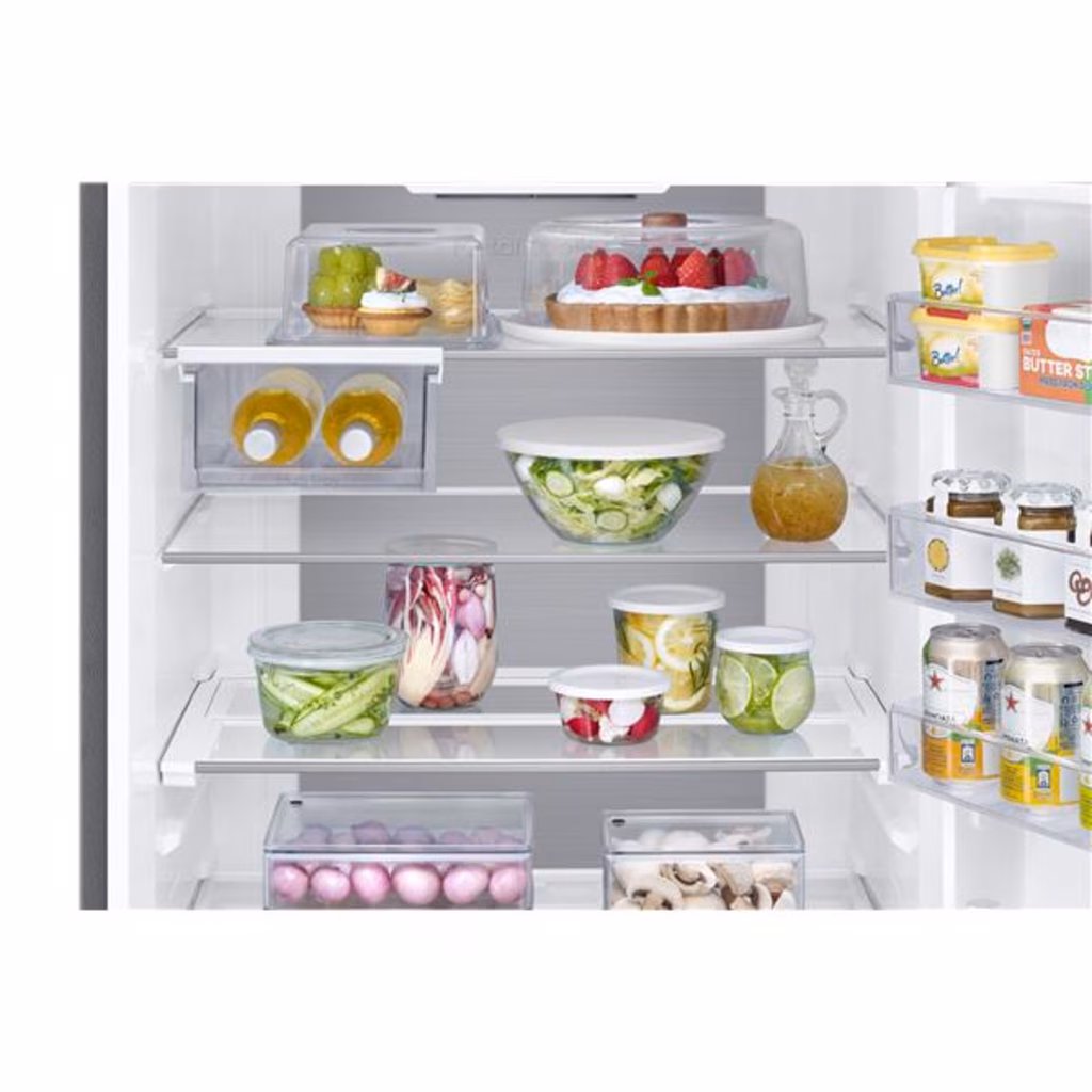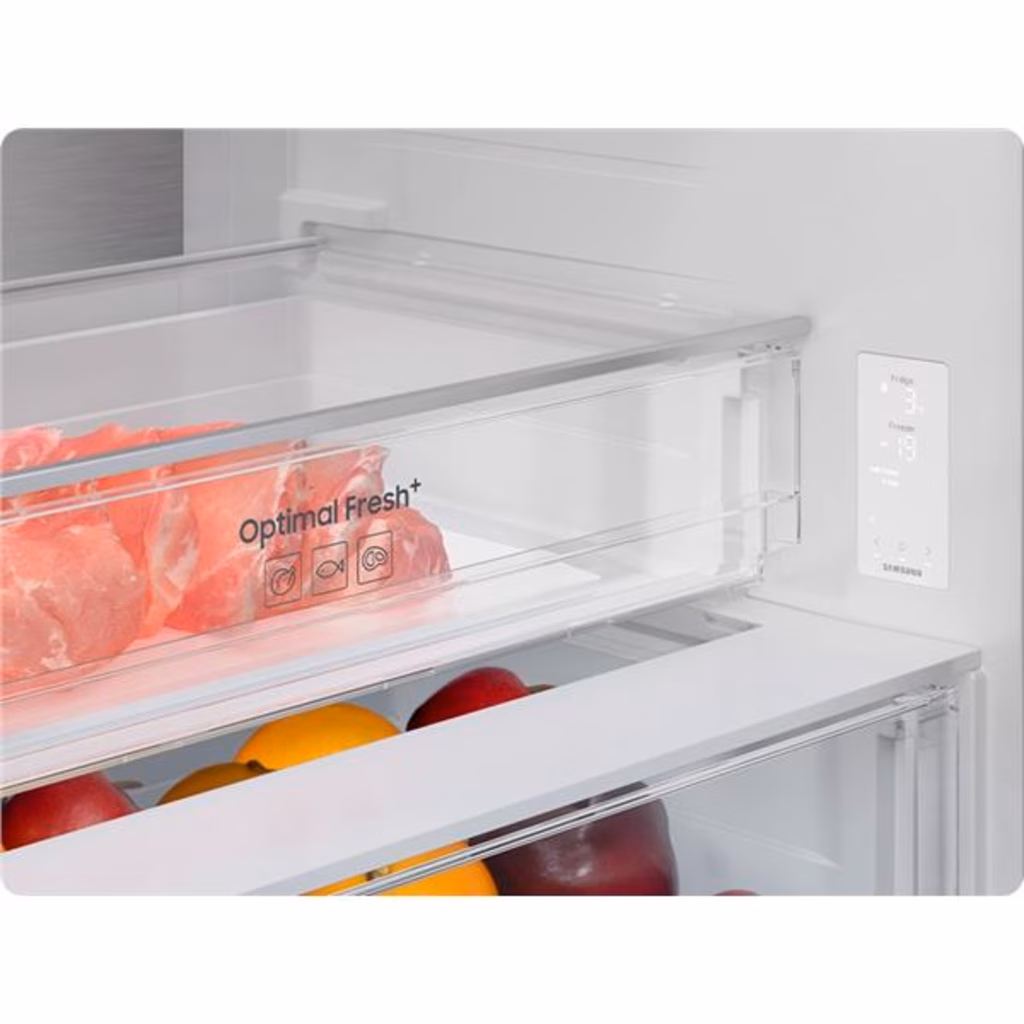 Frigorifero Combinato Samsung FIRST 75 AI largo 75cm Total No Frost 538L RB53DG706BS9EFPiù spazio allinterno Tecnologia SpaceMax Questo frigorifero extra large da 538 litri[1] garantisce una capacità interna superiore con una profondità di 711 mm. Lisolante a elevata efficienza della tecnologia SpaceMax consente di ridurre notevolmente lo spessore delle pareti, creando più spazio per la conservazione degli alimenti, senza antiestetiche sporgenze esterne. Freschezza ottimale con un raffreddamento indipendente Twin Cooling Assicurati che i tuoi cibi rimangano freschi più a lungo, senza seccarsi. Tramite un doppio sistema di refrigerazione con evaporatori separati, il sistema Twin Cooling ottimizza la temperatura e lumidità allinterno di freezer e frigorifero. Gli alimenti vengono così conservati in condizioni ottimali, preservandone il sapore naturale e gli aromi ed evitando commistioni di odori. Risparmio energetico smart in casa SmartThings Energy Gestisci i consumi di energia per ridurre le emissioni di anidride carbonica e risparmiare denaro. SmartThings Energy[2] fornisce consigli su come utilizzare lenergia in modo efficiente, monitora i consumi dei tuoi elettrodomestici[3] in tempo reale, confrontandoli con quelli del mese precedente, e ti avvisa se i tuoi target mensili potrebbero essere superati. Diagnosi dei problemi e manutenzione automatizzate SmartThings Home Care Prendersi cura del frigorifero è più facile che mai. Grazie a SmartThings Home Care,[4] che offre un servizio di monitoraggio e notifica in tempo reale, puoi controllare lo stato del frigorifero, incluse le condizioni del filtro dellacqua, e ricevere un avviso automatico quando è necessario sostituire i componenti o quando vengono rilevati dei problemi, compresa la possibile soluzione. Cottura intelligente, piatti gustosi SmartThings Food Gestisci, prepara e acquista gli alimenti in modo più efficiente. Con SmartThings Food[5] puoi creare una lista degli alimenti presenti nel tuo frigorifero e gestire le date di scadenza, in modo da poter verificare di cosa disponi ovunque e in ogni momento. Il servizio consiglia anche ricette personalizzate in base alle tue preferenze e agli ingredienti che hai a disposizione. Niente più abbagliamenti da luce interna Gentle Lighting Evita il fastidio agli occhi dovuto a una luce troppo intensa con lopzione Gentle Lighting dellapp SmartThings[6] , che consente di impostare la luminosità della luce interna. Per unattivazione graduale puoi ricorrere anche alla modalità Dimming, mente la modalità Night Light regola la luminosità a seconda che sia giorno o notte. Trattiene il freddo per preservare più a lungo la freschezza Metal Cooling Mantieni la temperatura interna ottimale, per preservare la freschezza dei cibi anche se la porta viene aperta di frequente. Il pannello e il condotto Metal Cooling trattengono il freddo e compensano ogni perdita di calore. Inoltre aggiungono una nota di eleganza e sono molto facili da pulire. Conservazione ideale di carne e pesce Optimal Fresh + Con una temperatura più bassa rispetto a quella del frigorifero, il cassetto separato Optimal Fresh + è la soluzione ideale per conservare carne e pesce e garantire un miglior mantenimento della loro freschezza e il loro sapore. Cibi freschi più a lungo e senza brina Total No Frost Evita di sprecare tempo ed energia per sbrinare il frigorifero. La tecnologia Total No Frost ottimizza la circolazione dell'aria per mantenere una temperatura costante che impedisce la formazione di ghiaccio. Inoltre raggiunge la temperatura impostata molto più rapidamente, ponendo un minor sollecitamento al sistema di raffreddamento che dura quindi più a lungo. Raffreddamento e congelamento rapidi on demand Power Cool + Power Freeze Anche la velocità è importante. Premendo un pulsante, la funzione Power Cool fa circolare un potente getto daria fredda nel frigorifero per raffreddare rapidamente cibi e bevande. La funzione Power Freeze fa la stessa cosa nel freezer. È il massimo per congelare o raffreddare i cibi al punto giusto Disposizione perfettamente ordinata Multi Tray Sfrutta bene lo spazio nel tuo frigorifero. Un vassoio rimovibile Multi Tray montato sotto i ripiani ti consentirà di riporre in modo ordinato e organizzato diversi piccoli oggetti, come bottigliette e lattine, ma anche alimenti e ingredienti come pizze e contenitori di uova. Facilmente estraibile, potrai utilizzarlo per servire i tuoi alimenti dove vuoi. Flessibilità per riporre gli oggetti più ingombranti Ripiano pieghevole Per riporre gli oggetti grandi e ingombranti in modo ottimale, preservando lo spazio allinterno del frigorifero, il ripiano pieghevole rientra completamente per consentire di riporre bottiglie e contenitori alti. E può essere facilmente piegato a metà per creare spazio a oggetti grandi e ingombranti, come una torta a più livelli o un croquembouche. Apertura nella direzione che vuoi Reversible Door Decidi tu la direzione di apertura delle porte del frigorifero: grazie alle porte reversibili avrai sempre la soluzione ideale per la disposizione della tua cucina. La porta può essere invertita semplicemente sostituendo le cerniere[7]. Questo si traduce nella massima flessibilità di combinazione dei vari moduli in modo da posizionare il frigorifero ovunque desideri. Raffreddamento omogeneo ed efficienza energetica Nuovo compressore ad alta efficienza con 20 anni di garanzia Conserva gli alimenti a una temperatura costante e risparmia energia. La struttura ottimizzata del compressore Digital Inverter ad alta efficienza si traduce in uninerzia 4,1 volte maggiore rispetto ai compressori attuali[8] e in un minor consumo di energia, in particolare nel mantenere una temperatura costante. In più, il compressore vanta una garanzia di 20 anni[9].Più spazio allinternoTecnologia SpaceMax