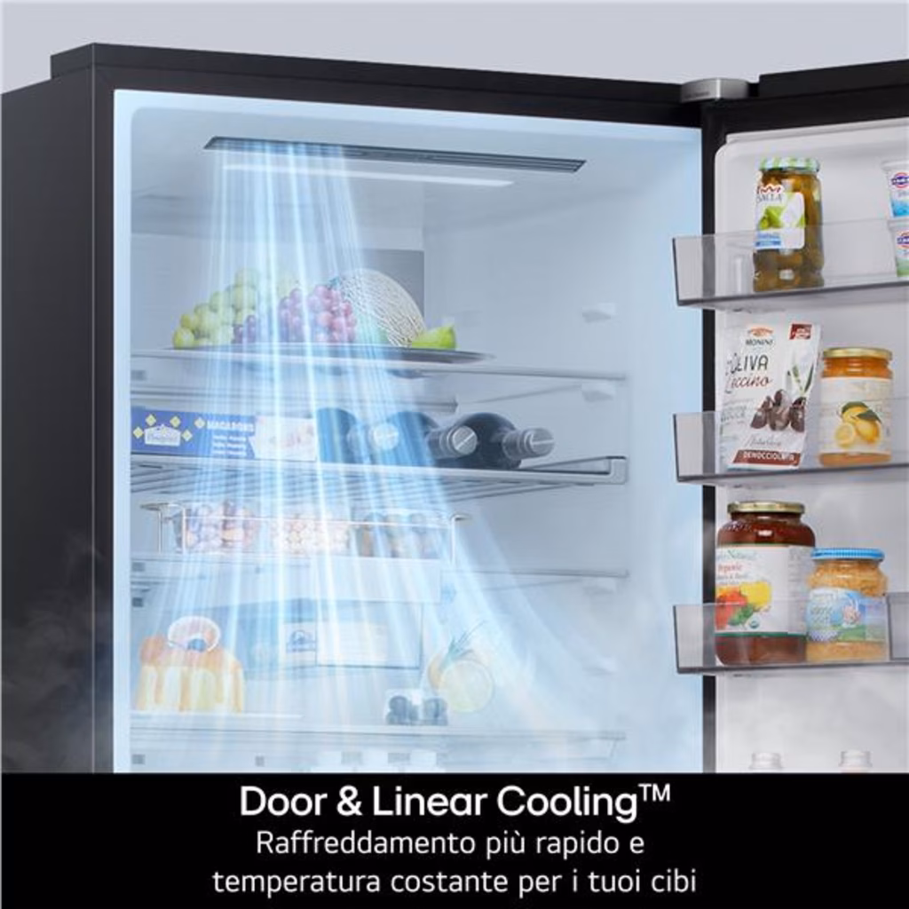 Tecnologia Door & Linear Cooling Il sistema Door Cooling integra una bocchetta supplementare posta nella parte superiore per raffreddare più velocemente e più efficacemente le zone del frigo, compresa quella della porta. La nostra tecnologia Linear Cooling mantiene la temperatura del frigo costante, con scostamenti di solo ±0,5°C. Grazie a queste due tecnologie, puoi conservare i tuoi cibi più a lungo mantenendone la freschezza.