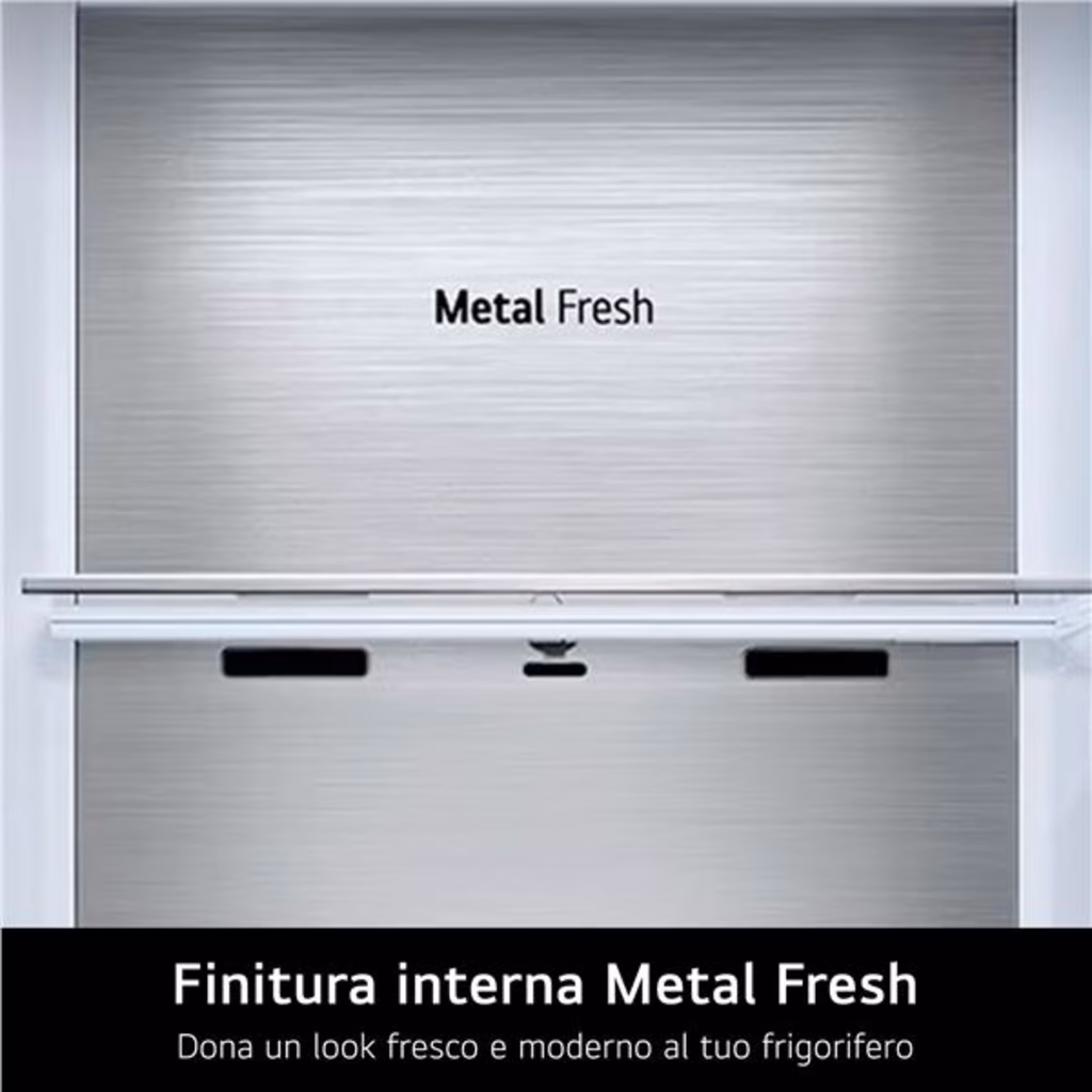 Metal FreshUn frigorifero bello fuori e anche dentro. La parete posteriore con finitura metallica conferisce all interno del frigorifero un fascino raffinato."