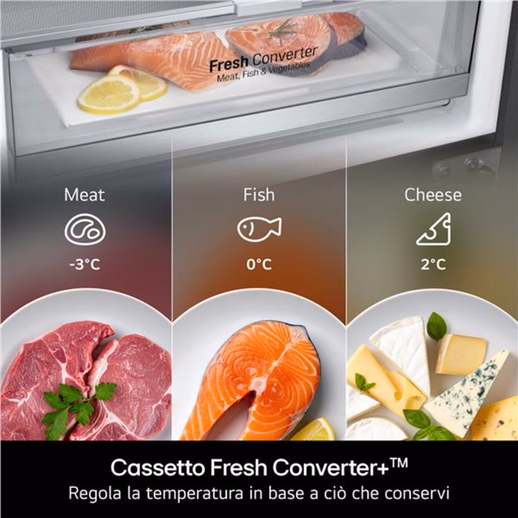 Cassetti FRESH Balancer e FRESH Converter Ottieni il massimo controllo sulla conservazione dei tuoi alimenti grazie ai cassetti del frigo. Il FRESH Balancer ti permette di regolare l umidità del cassetto frutta & verdura, scegliendo facilmente tra due modalità dedicate. Il cassetto Zero Gradi con FRESH Converter , consente di impostare la temperatura ottimale per carne o pesce fresco, oppure trasformarlo in uno spazio frigo tradizionale, garantendo flessibilità e organizzazione perfetta.