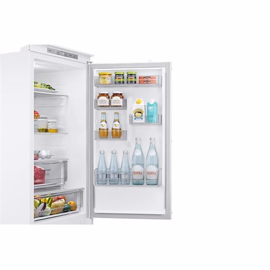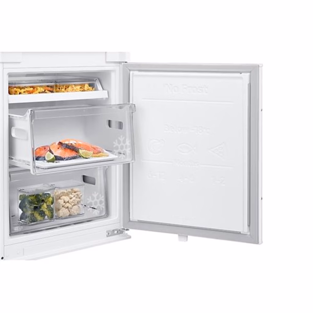 Samsung BRB80F26BCS0EFIl frigorifero da incasso Samsung BRB80F26BCS0, con una capacità di 264 litri e classe energetica C, combina prestazioni avanzate e risparmio energetico in un design moderno e funzionale. Dotato di tecnologia Total No Frost, elimina l accumulo di ghiaccio e garantisce una temperatura uniforme per mantenere gli alimenti freschi più a lungo. Grazie a Twin Cooling Plus, il frigorifero gestisce separatamente il raffreddamento di frigorifero e freezer, ottimizzando temperatura e umidità per una conservazione ideale. La funzione Cool Select Plus aggiunge flessibilità, permettendo di trasformare il comparto freezer in frigorifero a seconda delle tue esigenze. I cassetti Humidity Fresh e Optimal Fresh sono progettati per prolungare la freschezza di frutta, verdura e alimenti delicati, regolando l umidità in modo ottimale. Inoltre, la connettività Wi-Fi ti consente di controllare e personalizzare il funzionamento del frigorifero direttamente dal tuo smartphone. Il Metal Back garantisce maggiore durabilità e sicurezza, mentre il design integrato si adatta perfettamente alla tua cucina, offrendo un aspetto elegante e discreto.