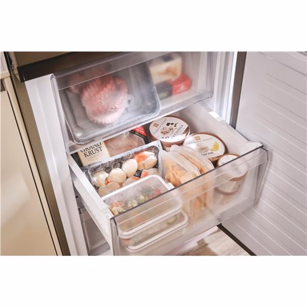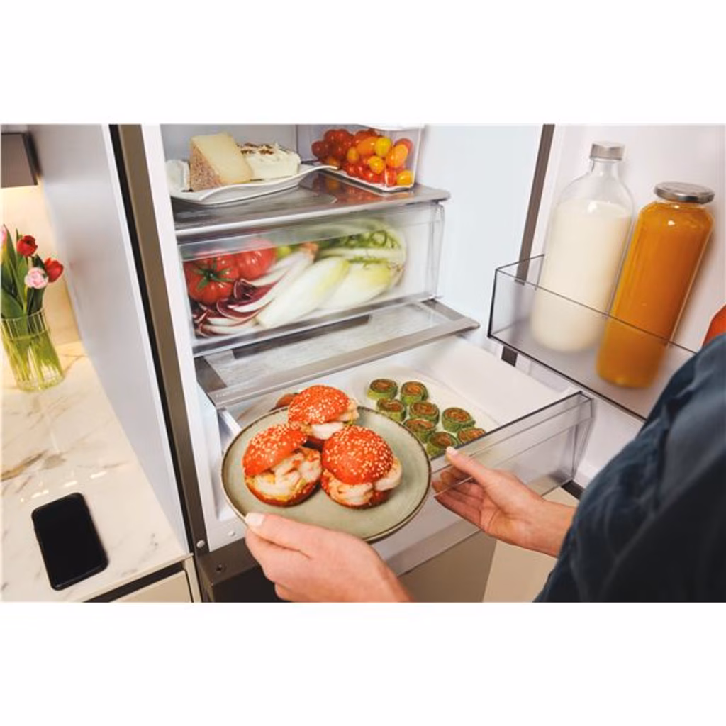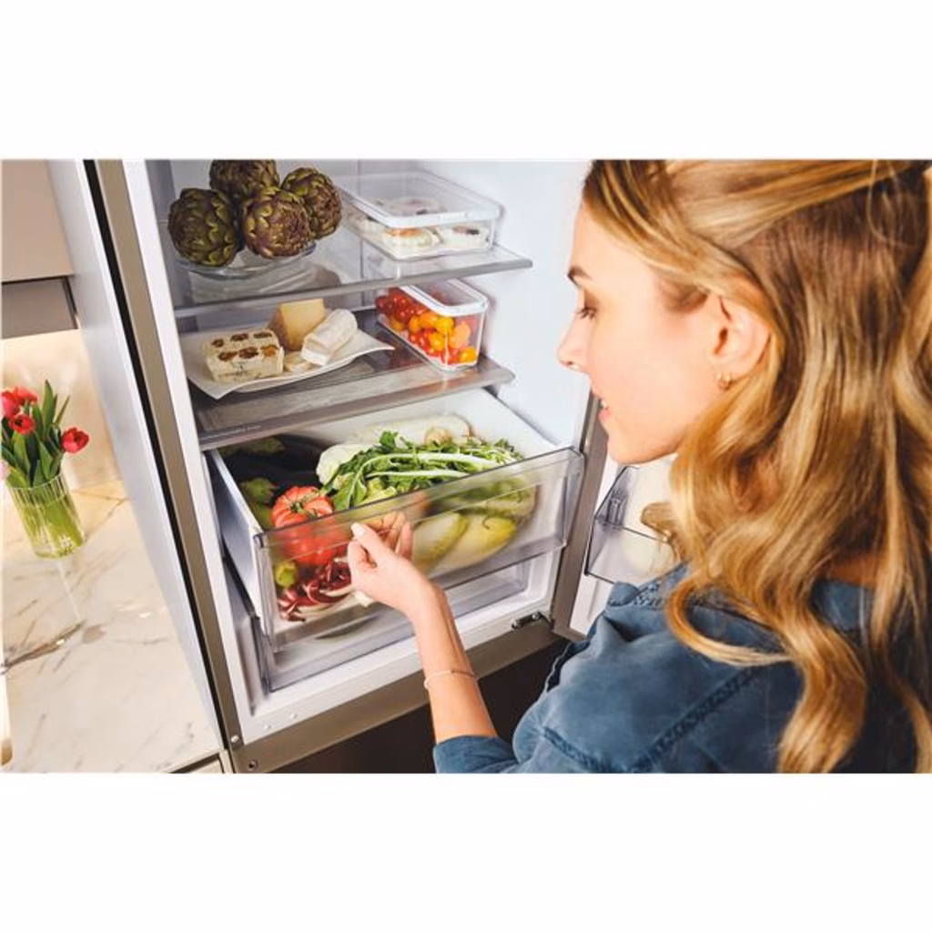 Questo frigorifero combinato da 60 cm ha una capacità di 409 litri e offre lo spazio per riporre fino a 21 sacchetti della spesa.* Inoltre, grazie agli ampi cassetti del congelatore hai spazio extra per gli oggetti ingombranti.