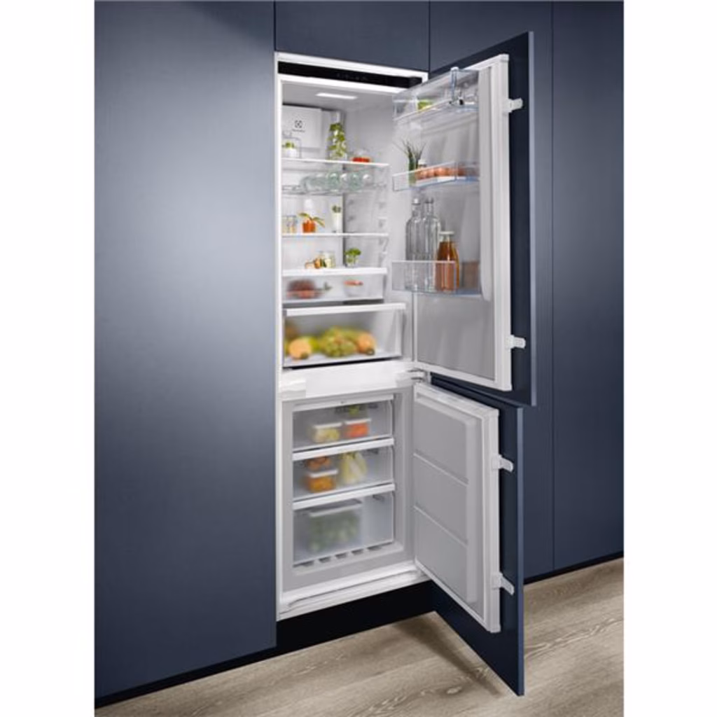 Electrolux LNT6ME18S frigorifero con congelatore Da incasso 217 L E BiancoElectrolux LNT6ME18S. Capacità netta totale: 217 L. Cerniera porta: Destra. Classe climatica: SN-ST, Emissione acustica: 37 dB. Capacità netta frigorifero: 186 L, No Frost (frigorifero), Sistema Multi-Airflow (frigorifero), Luce interna, Numero di ripiani frigorifero: 4. Capacità netta congelatore: 62 L, Capacità di congelamento: 5 kg/24h, No Frost (congelatore). Classe efficienza energetica: E, Consumo energetico annuo: 217 kWh. Colore del prodotto: Bianco
