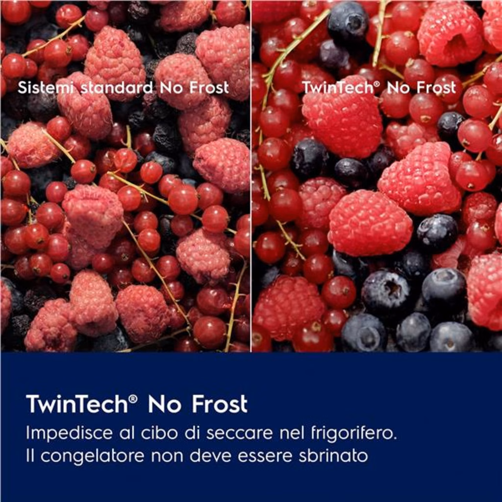 Electrolux ENT6NE18S1 Frigocongelatore Serie 600 TwinTech® Total No Frost 177,2 cmFrigocongelatore 600 TwinTech® Total No Frost: l'evoluzione della conservazione Il frigocongelatore serie 600 TwinTech® Total No Frost è la nuova frontiera della conservazione. La sua tecnologia consente di avere le condizioni ottimali per la conservazione dei tuoi ingredienti sia nel vano frigorifero che nel vano congelatore, per cibi sempre freschi e meno sprechi.TwinTech® Total No Frost: alimenti più succosi e idratati del 60%TwinTech® Total No Frost è dotato di un avanzato sistema di raffreddamento doppio per il frigorifero e il congelatore. Questa tecnologia garantisce che il congelatore rimanga al riparo dal gelo e che l'umidità del frigorifero sia ottimale, evitando che gli alimenti si secchino.Garanzia di dieci anni sul compressore inverterGoditi la massima tranquillità sapendo che il compressore inverter è coperto da una garanzia di 10 anni. La garanzia copre i danni che potrebbero verificarsi al compressore inverter garantendoti la riparazione totalmente gratuita dello stesso (manodopera, trasporto, rifonimento di gas).Conservazione ideale degli alimenti con controllo elettronico internoControlla le condizioni di conservazione dei tuoi alimenti con il controllo elettronico interno. I comodi indicatori LED ti mostrano la temperatura e le impostazioni così non dovrai più tirare a indovinare.FastFreeze: congela rapidamente gli alimenti freschiIl sistema FastFreeze congela rapidamente gli alimenti freschi in modo da conservare meglio le vitamine, la consistenza, i sapori e tutte le qualità più salutari.L'illuminazione a LED interna rischiara ogni angolo del frigoriferoL'illuminazione a LED integrata assicura una visibilità eccellente all'interno del frigorifero. Le lampadine discrete e a basso consumo energetico illuminano l'intero spazio con una luce vivace, consumando dieci volte meno energia rispetto all'illuminazione standard.
