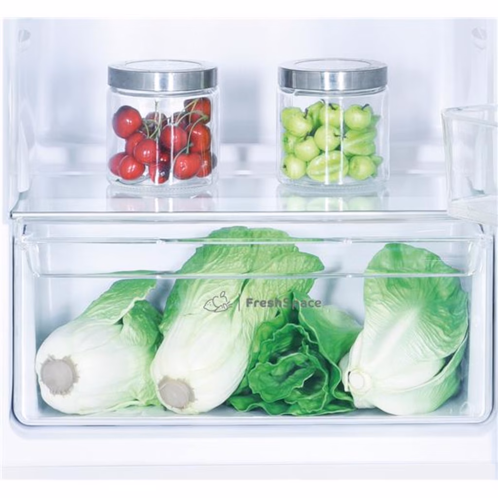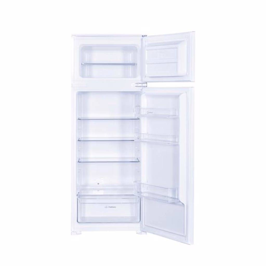 Indesit IN D 2040 E Da incasso 205 L BiancoIndesit IN D 2040 E. Capacità netta totale: 205 L. Cerniera porta: Sinistra. Classe climatica: N-ST, Emissione acustica: 39 dB. Capacità netta frigorifero: 169 L, Luce interna, Numero di ripiani frigorifero: 4, Numero di cassetti per verdura: 1. Capacità netta congelatore: 36 L, Capacità di congelamento: 2,4 kg/24h. Compartimento zona fresca. Classe efficienza energetica: E, Consumo energetico annuo: 175 kWh. Colore del prodotto: Bianco