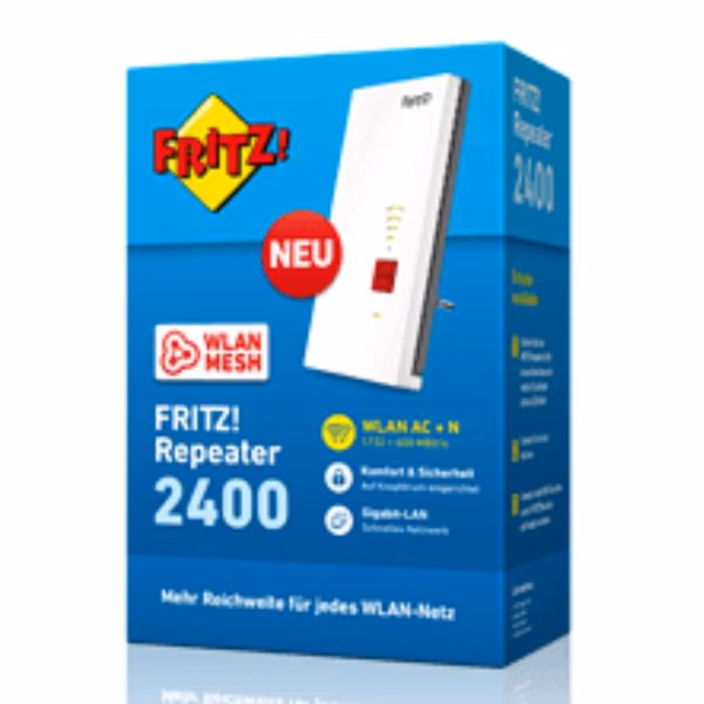 Il FRITZ!Repeater 2400 aumenta in modo semplice e rapido la portata di ogni rete wireless. Con due unità wireless negli standard wireless AC e N, in grado di raggiungere una velocità di trasferimento dati fino a 2.333 MBit/s, il ripetitore mette a disposizione una connessione stabile e la massima larghezza di banda per tutti i dispositivi wireless connessi. Il ripetitore garantisce contemporaneamente una perfetta copertura wireless fino all'ultimo angolo di ogni stanza.