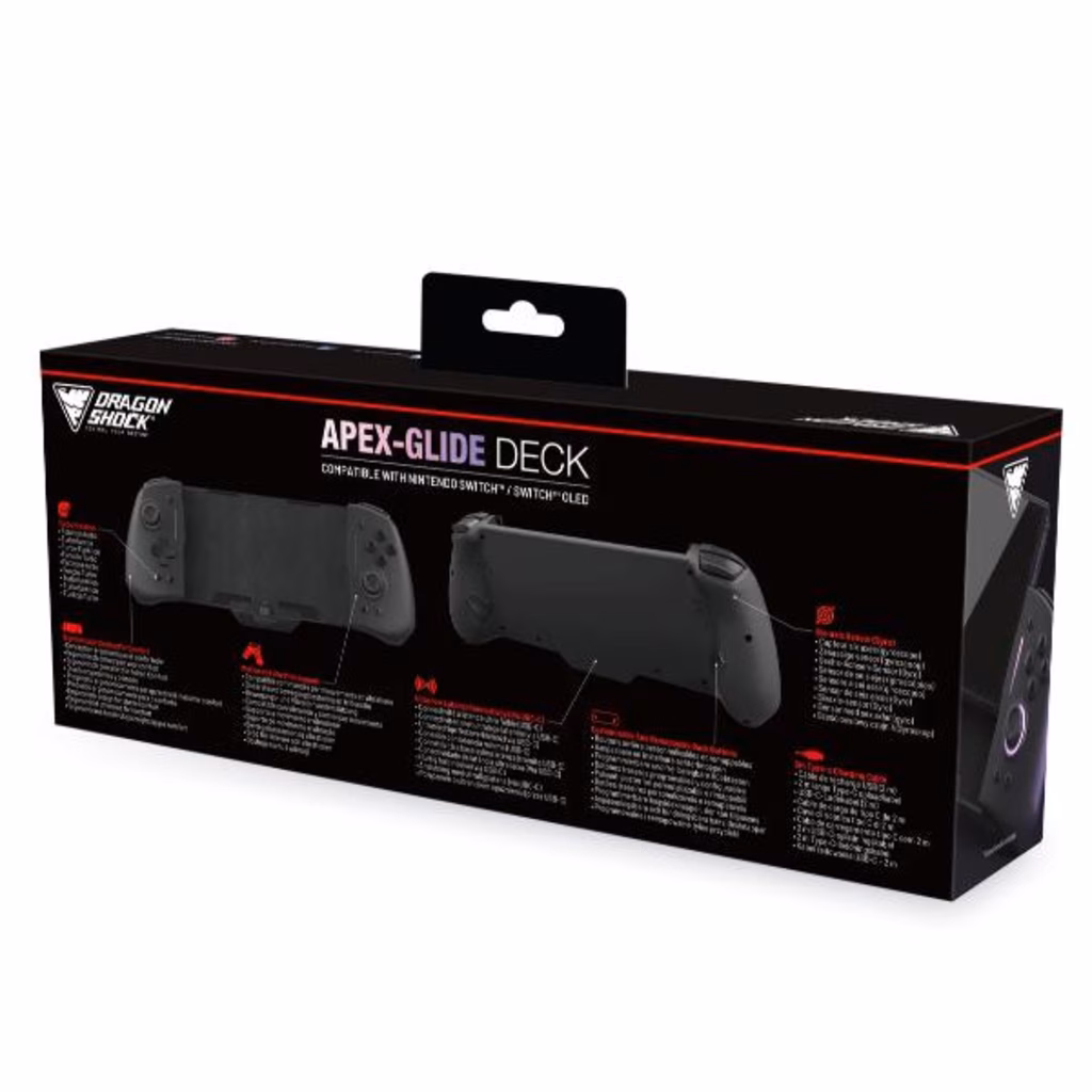 Prova un controllo superiore con il DragonShock Apex-Glide Deck per Switch. Progettato con precisione per garantire comfort e prestazioni, è il compagno perfetto per intense sessioni di gioco su Nintendo Switch e Switch OLED.