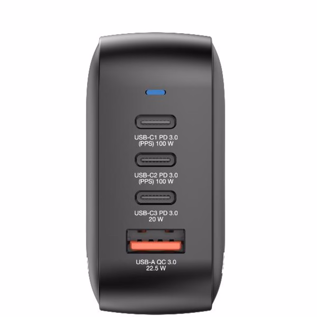 Mini caricatore da parete da 100W con 4 porte di uscita: 2 x USB-C® PD 100W, 1 x USB-C PD 20W e 1 x USB-A QC 3.0