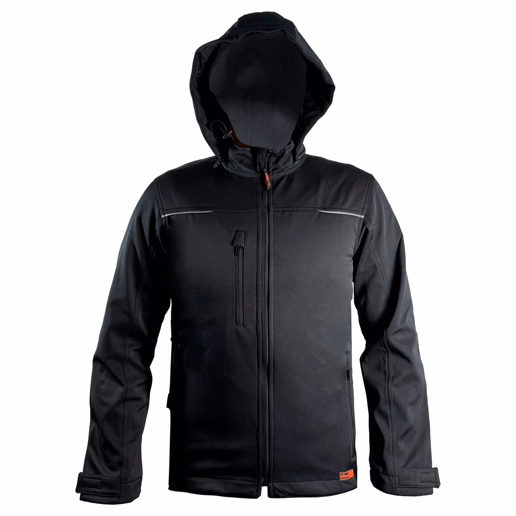 Giacca Softshell da donna con 4 tasche e cappuccio 95% poliestere 5% elastane da 330 g/m² - 4 tasche: 2 laterali con zip - 1 al petto con zip - 1 interna con zip - manica regolabile con velcro - fodera in rete - fondo giacca con coulisse - fondo giacca sagomato - impermeabilità colonna d'acqua 10.000 mm - Zip YKK - cappuccio staccabile con zip