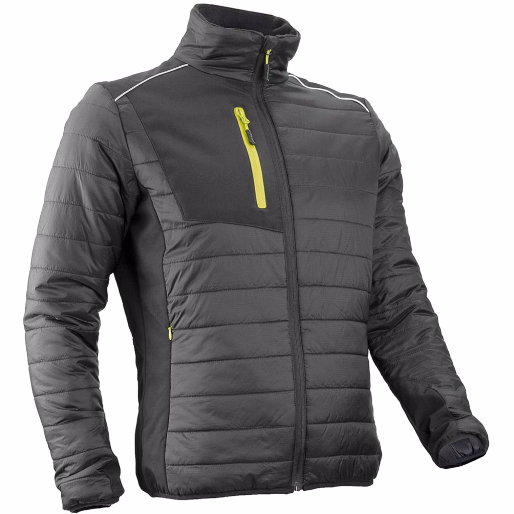 Giacca tecnica leggera ma termicamente performante, ideale come strato intermedio per ambienti di lavoro dinamici. Il tessuto esterno è in nylon micro-ripstop 2,5 mm (40 g/m²) per garantire resistenza a strappi e abrasioni, mentre limbottitura in Sorona® (100 g/m² corpo e 80 g/m² maniche) assicura calore e traspirabilità. La fodera interna è in nylon (75 g/m²), abbinata a inserti in softshell 3 strati con pile (230 g/m²) su spalle, petto, fianchi e polsini, per maggiore protezione e robustezza. Dotata di collo alto, zip centrale con mentoniera, tasca sul petto con zip, 2 tasche verticali invisibili laterali, e tasca interna con chiusura a velcro. I polsini e il fondo sono regolabili tramite bordi elasticizzati con velcro. Dorso prolungato e piping retroriflettente sulle spalle completano un capo che unisce comfort, calore e design tecnico.