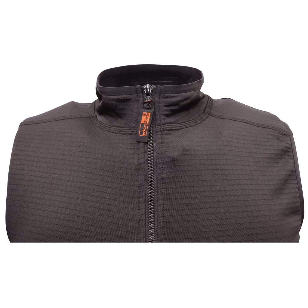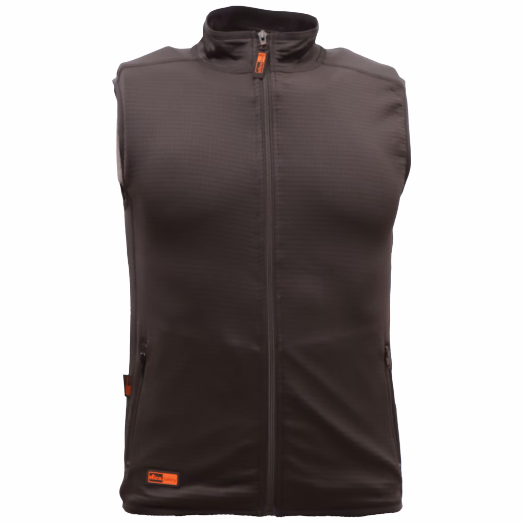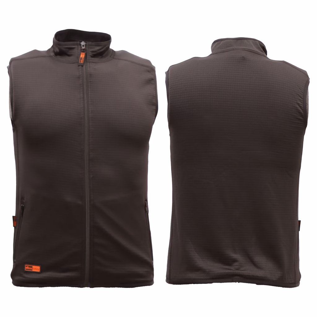 Gilet in tessuto pile elasticizzato XF3017 GRID TECH, 97% Poliestere, 3% Elastan, 250 g/m², full zip, collo alto - due tasche ai fianchi chiuse con zip, superficie interna a griglia, fortemente traspirante - colore nero a contrasto su collo, spalle e fianchi.