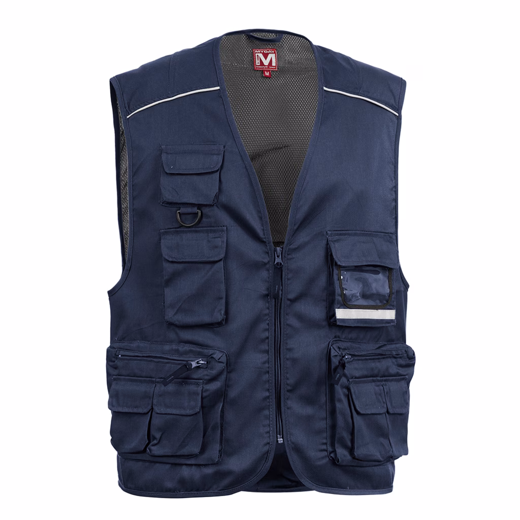 Gilet estivo multitasche 80% poliestere / 20% cotone da 190 g/m2 - tasca portabadge estraibile - piping in silver fluo - 2 tasche posteriori