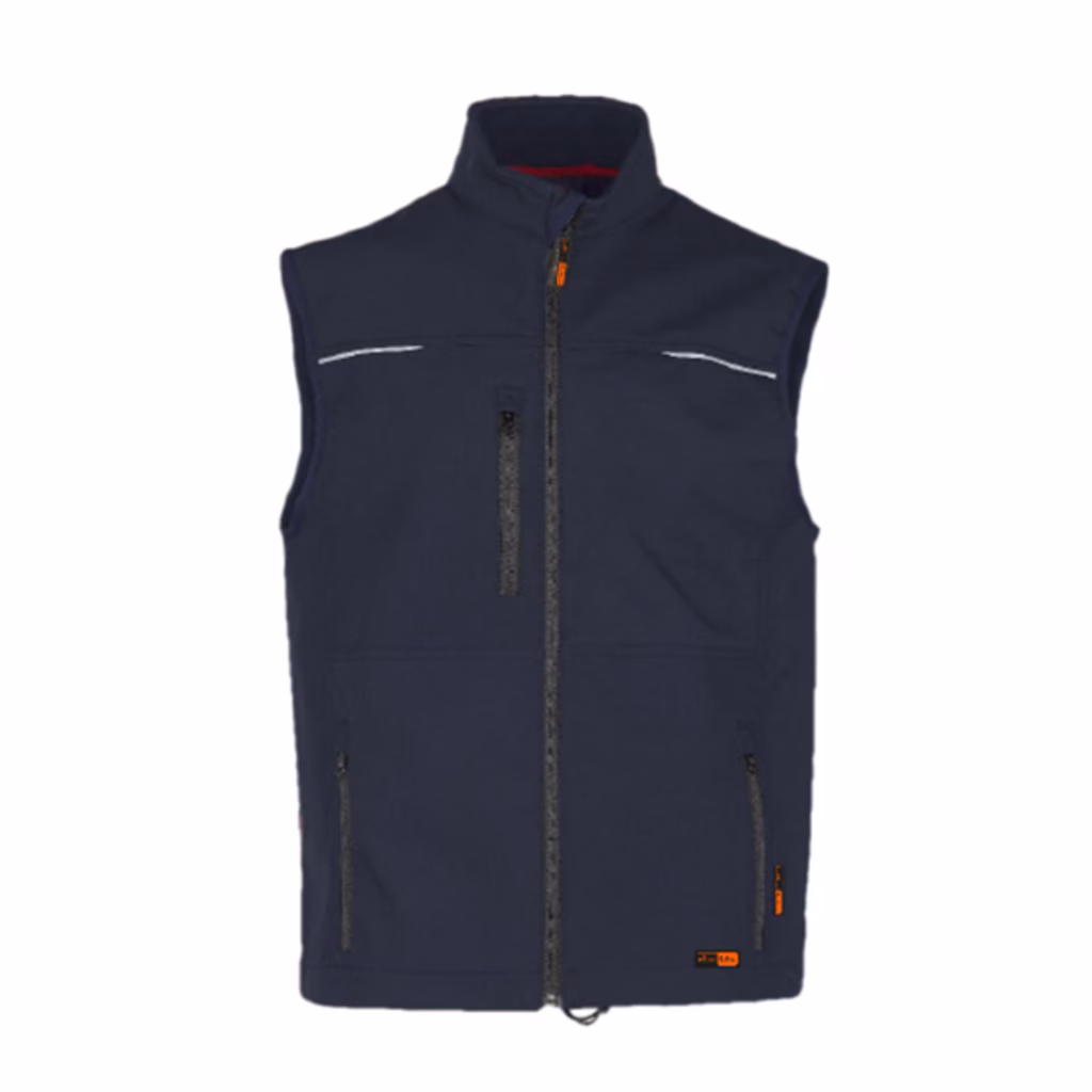 Gilet Softshell con 3 tasche - fondo posteriore sagomato - fodera in rete, piping rifrangente - fondo giacca regolabile con coulisse - tasche posteriori porta utensili e cellulare - impermeabilità colonna d'acqua 10.000 mm - zip YKK
