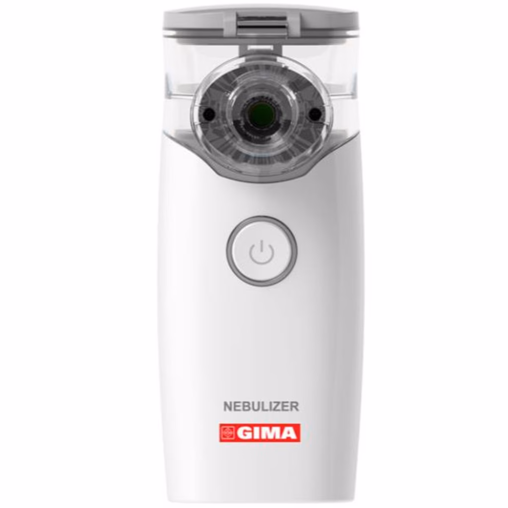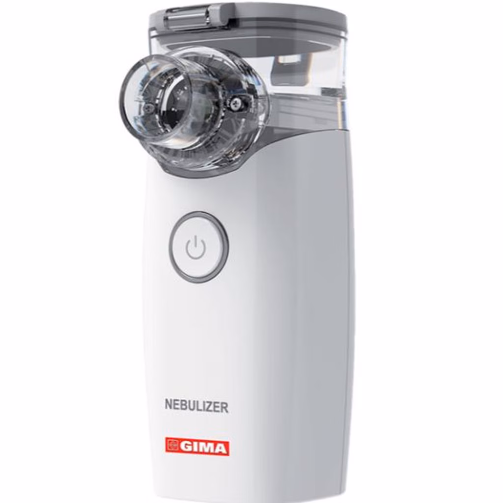 Nebulizzatore compatto, maneggevole e leggero per il trattamento dei disturbi respiratori come infiammazioni acute, tracheiti, bronchiti, gonfiore e bruciore alla gola.
