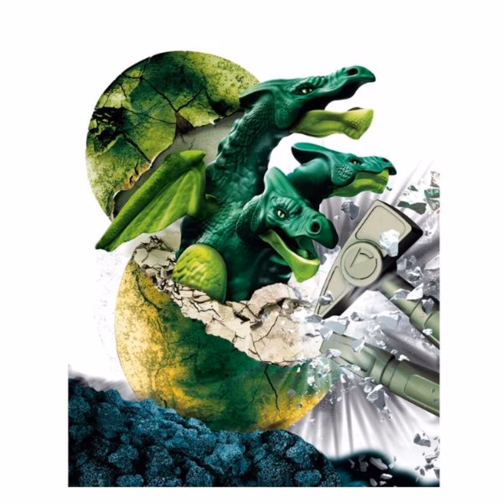 Il gioco contiene un uovo da scavare con martello e scalpello per trovare tutte le parti del drago da assemblare pezzo dopo pezzo.