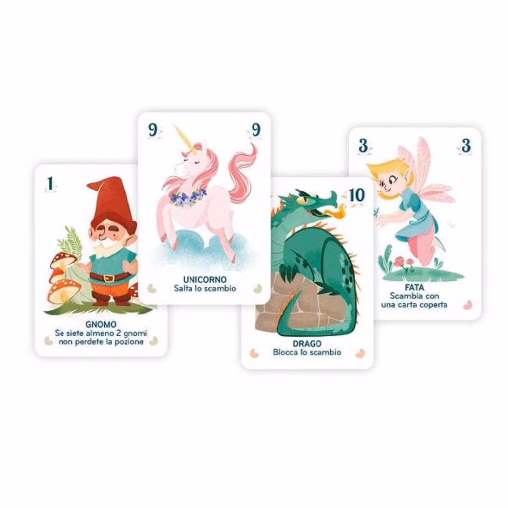 Il tradizionale gioco di carte Cucù si colora di tanti personaggi Fantasy e di una variante di gioco pensata appositamente per divertirsi con amici e parenti. Contiene un mazzo di 66 carte arricchite da illustrazioni che sapranno coinvolgere i bambini nel gioco. Il mazziere distribuirà una carta coperta a ogni giocatore. Il giocatore alla sua destra inizierà il turno e potrà scegliere se tenere la sua carta o scambiarla con quella del giocatore successivo. Se il giocatore successivo ha però in mano una delle carte speciali potrà fare cucù e impedire lo scambio. Al termine di ogni turno si scoprono le carte e chi ha la carta più bassa perde una vita. Un grande classico dei giochi di carte rivisto in chiave moderna per far divertire adulti e bambini