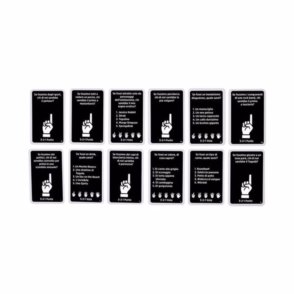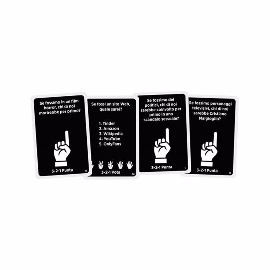Il giocatore attivo pesca una carta domanda e la legge ad alta voce. Poi tutti i giocatori votano. I giocatori che fanno parte della maggioranza ottengono un punto ciascuno e possono vantarsi con gli altri giocatori!