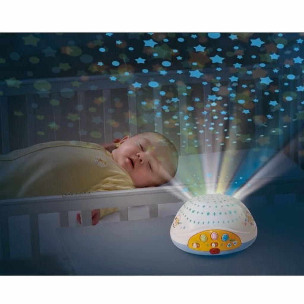 Le proiezioni colorate sul soffitto , tre pecorelle in tessuto e due stelle rimovibile attirano l'attenzione e stimolano il senso visivo del tuo bambino.