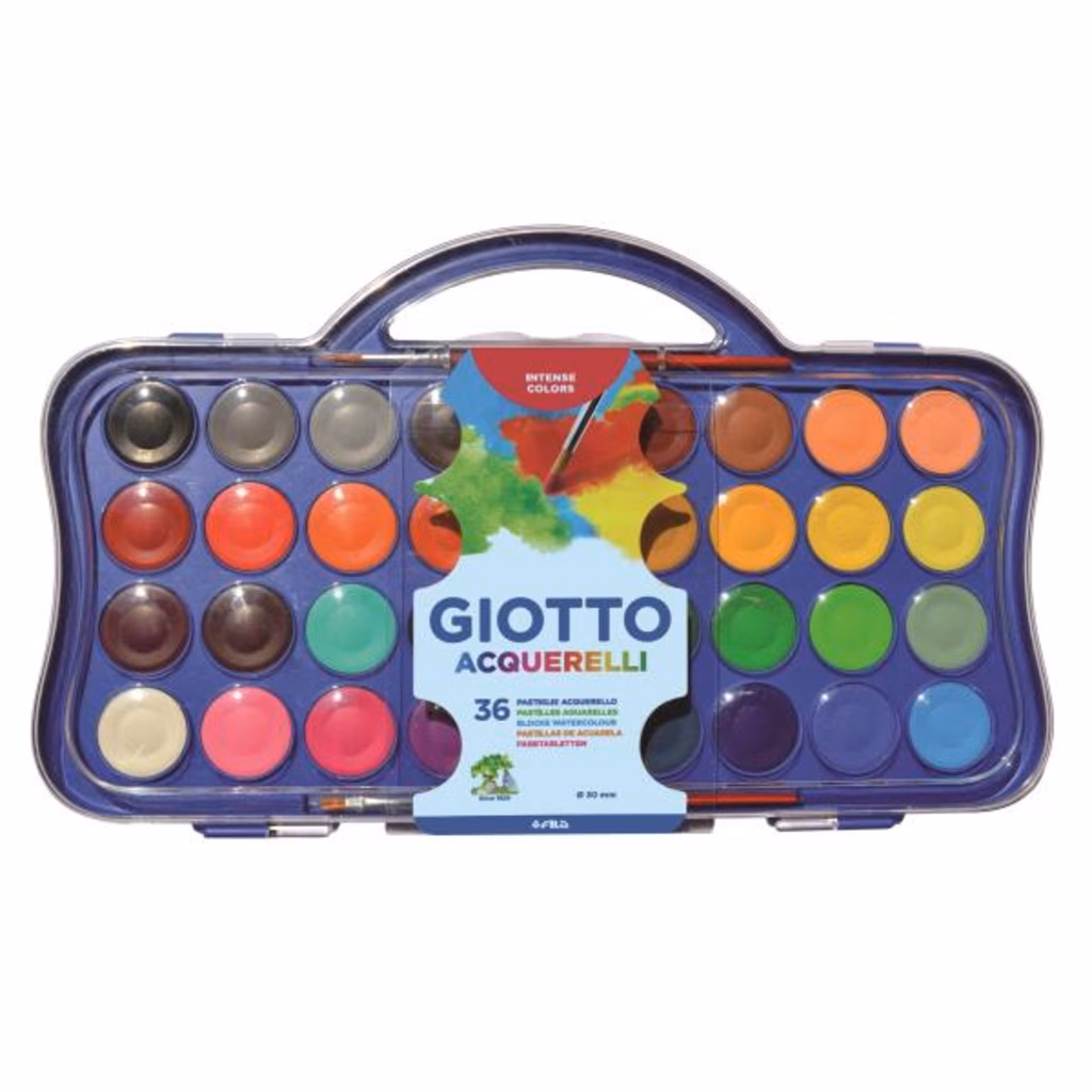 Giotto acquerelli standard - pastiglie di tempera, la pittura puo` essere diluita con acqua - 36 col