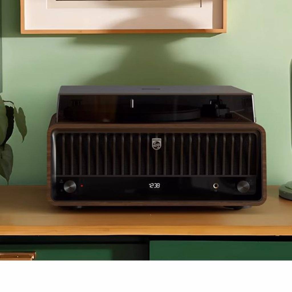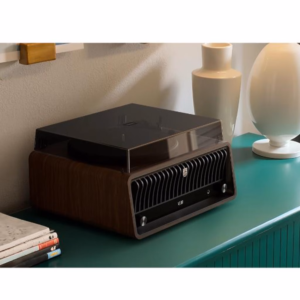 Il look audace di metà secolo rende omaggio ai leggendari modelli di radio Philips degli anni '30 e '50, mentre l'audio ricco e potente è fortemente ancorato al presente. I dettagli rétro, come la struttura esterna in legno e la griglia dell'altoparlante incassata, si integrano perfettamente con le funzionalità moderne, come il Bluetooth® e la nostra pratica app di supporto.