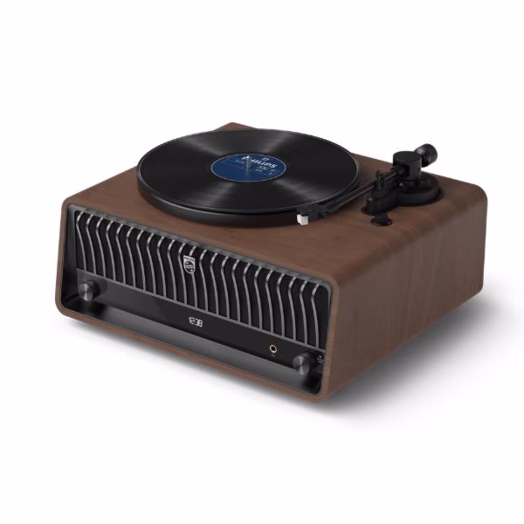 Tutto cuore e anima. Dai potenza alla musica che ami con il giradischi Bluetooth® all-in-one che gira, trasmette in streaming e sintonizza anche la radio. Scoprirai un inconfondibile look rétro e straordinari altoparlanti integrati per un audio stereo potente.