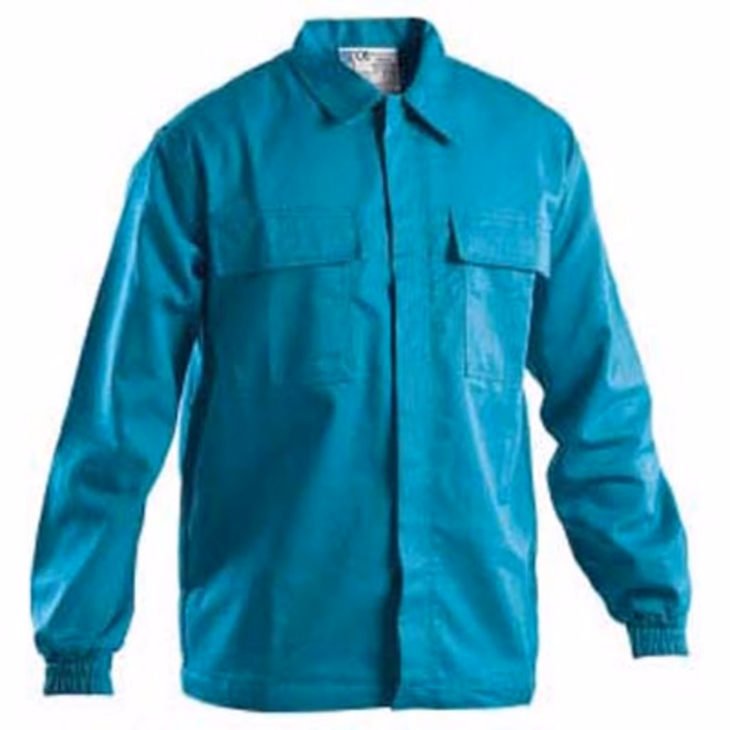 Tessuto: 100% cotone ignifugato - collo a camicia - chiusura anteriore con bottoni automatici coperti - elastico ai polsi - due tasche al petto chiuse con pattina e velcro - rinforzo sulle spalle - doppie cuciture nei punti di maggior sforzo