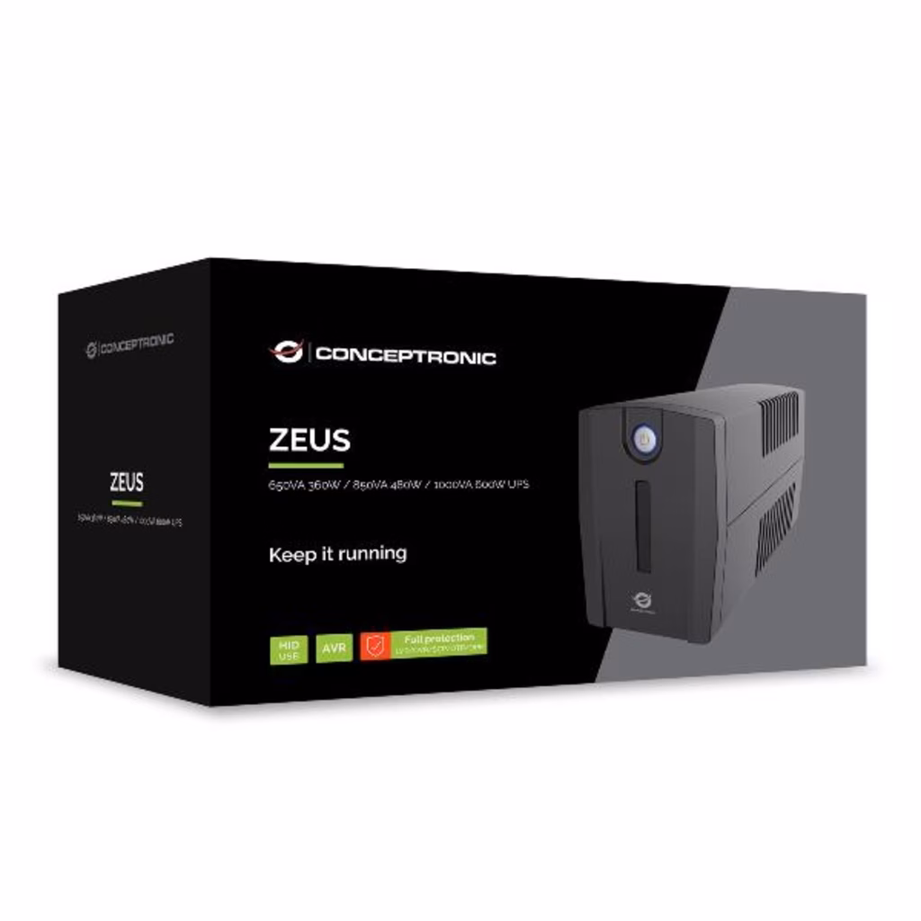 Immagine di Gruppo di continuità CONCEPTRONIC UPS 650VA 360W, Schuko x 2, HID USB, RJ45 In/Out, ZEUS01ES