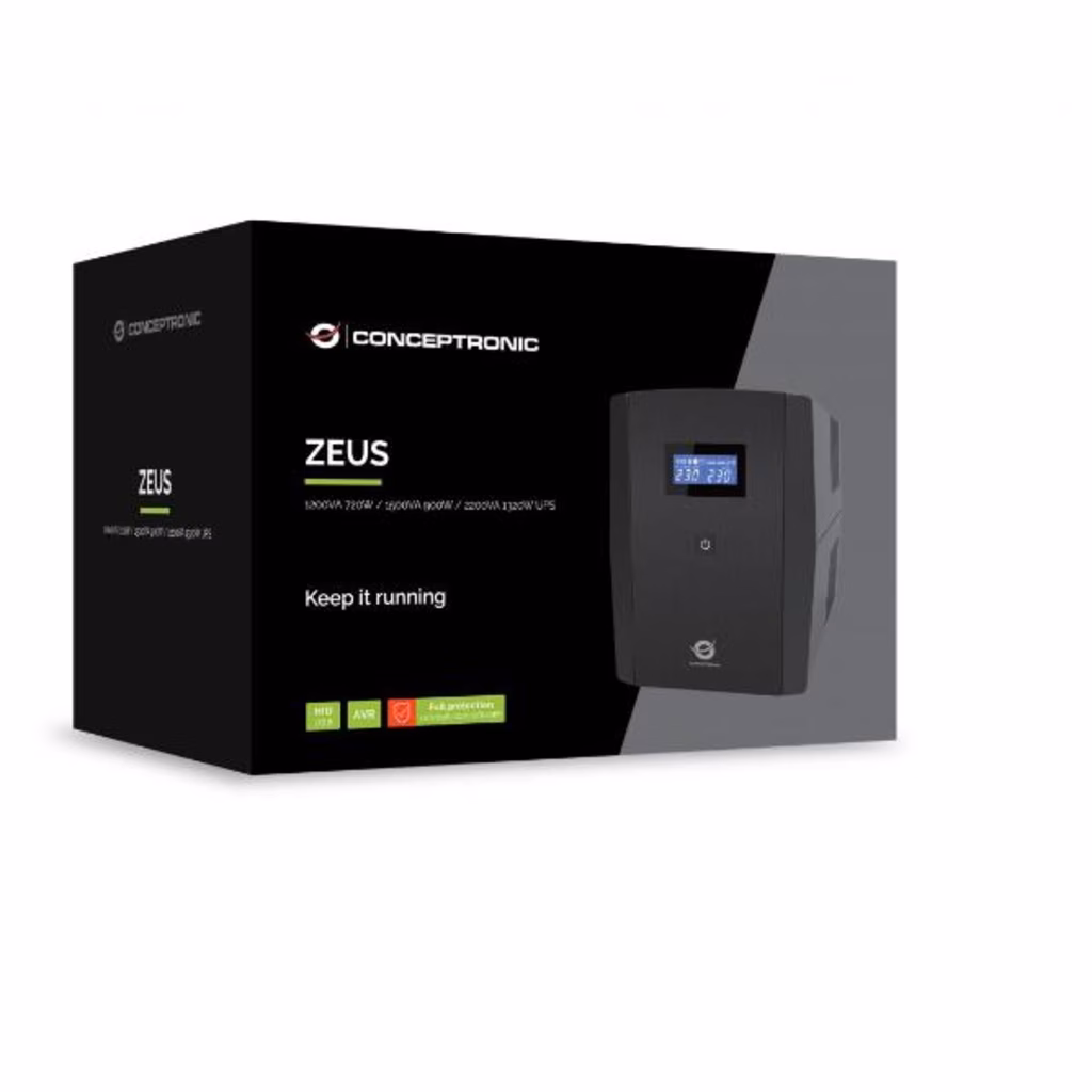 Immagine di Gruppo di continuità CONCEPTRONIC UPS 1200VA 720W, IEC x 3, Schuko x 2, HID USB, AVR ZEUS03EM
