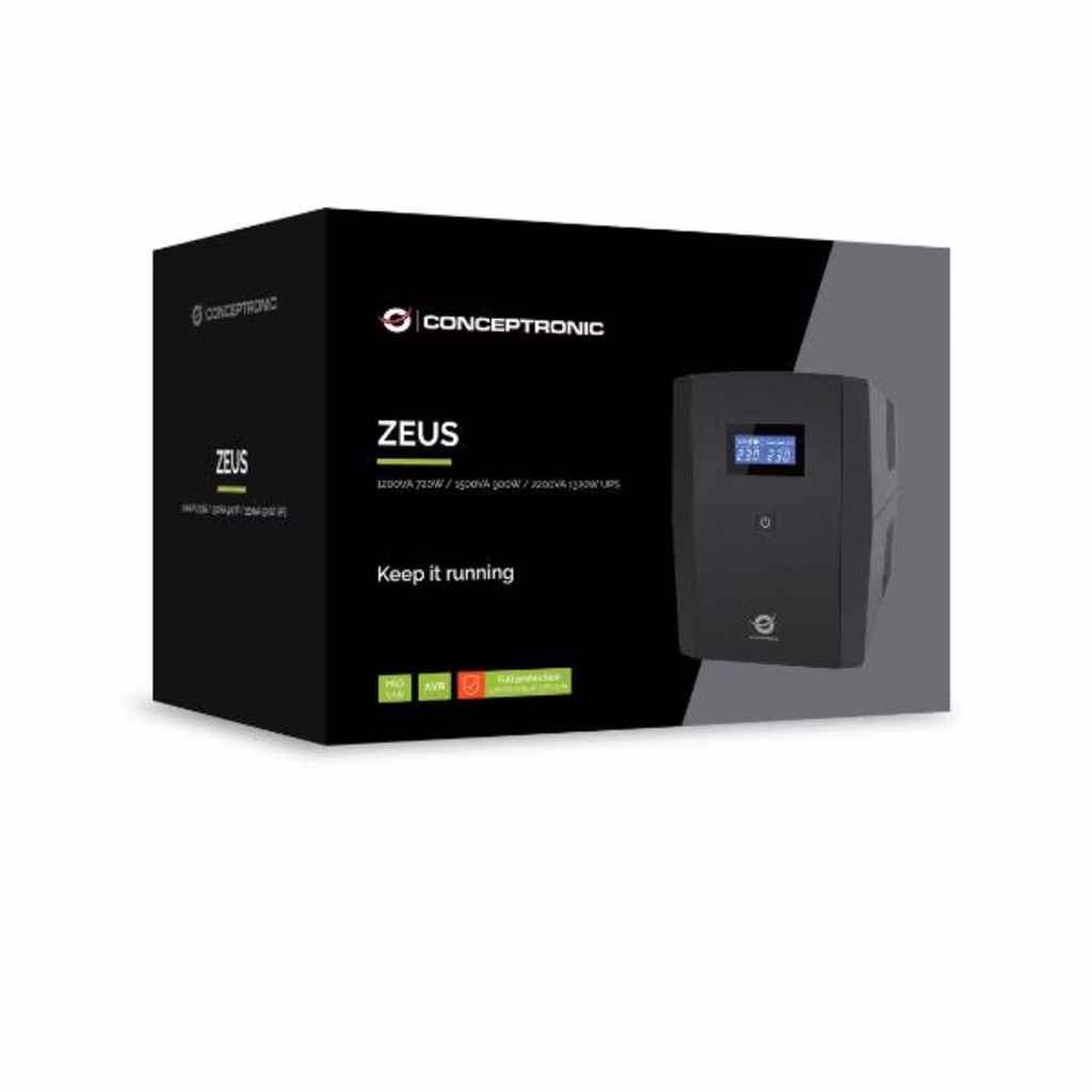 Immagine di Gruppo di continuità CONCEPTRONIC UPS 1500VA 900W, IEC x 3, Schuko x 2, HID USB, AVR ZEUS09E