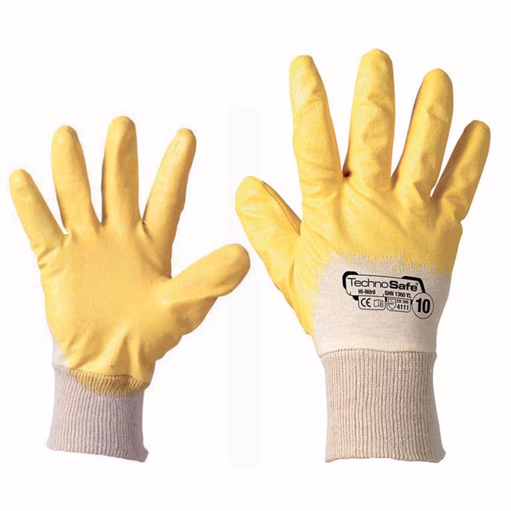 Guanto in tela di cotone jersey impregnato in NBR - spalmatura in NBR leggero - dorso aerato - polsino elasticizzato - ottima resistenza a grassi, oli e idrocarburi - ideale per attività manuali con materie prime, edilizia