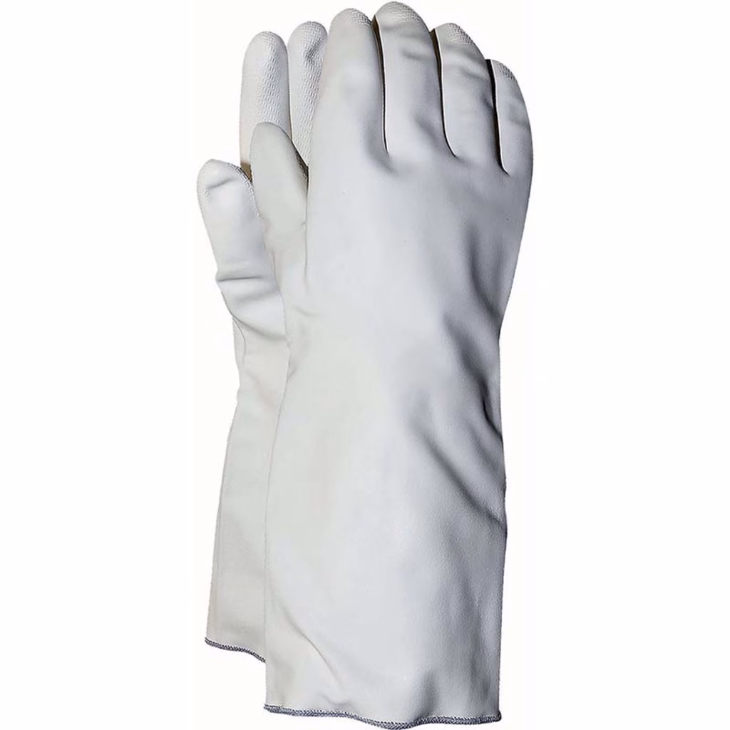Guanti in nitrile studiato per le esigenze della ristorazione - garantisce igiene, alta protezione termica e 100% impermeabilità - colore bianco-crema conforme agli standard d'abbigliamento per il settore della Ristorazione Esterna (RE) - protezione al calore da contatto fino a 150 °C - lavabili all'interno e all'esterno per un'igiene migliore - resistenza agli oli, ai grassi e ai principali detersivi - manica lunga (cm 45) per proteggere l'avambraccio durante la manipolazione di piatti caldi - ideale per panifici, ristorazione collettiva, lavoro con autoclavi e forni a vapore