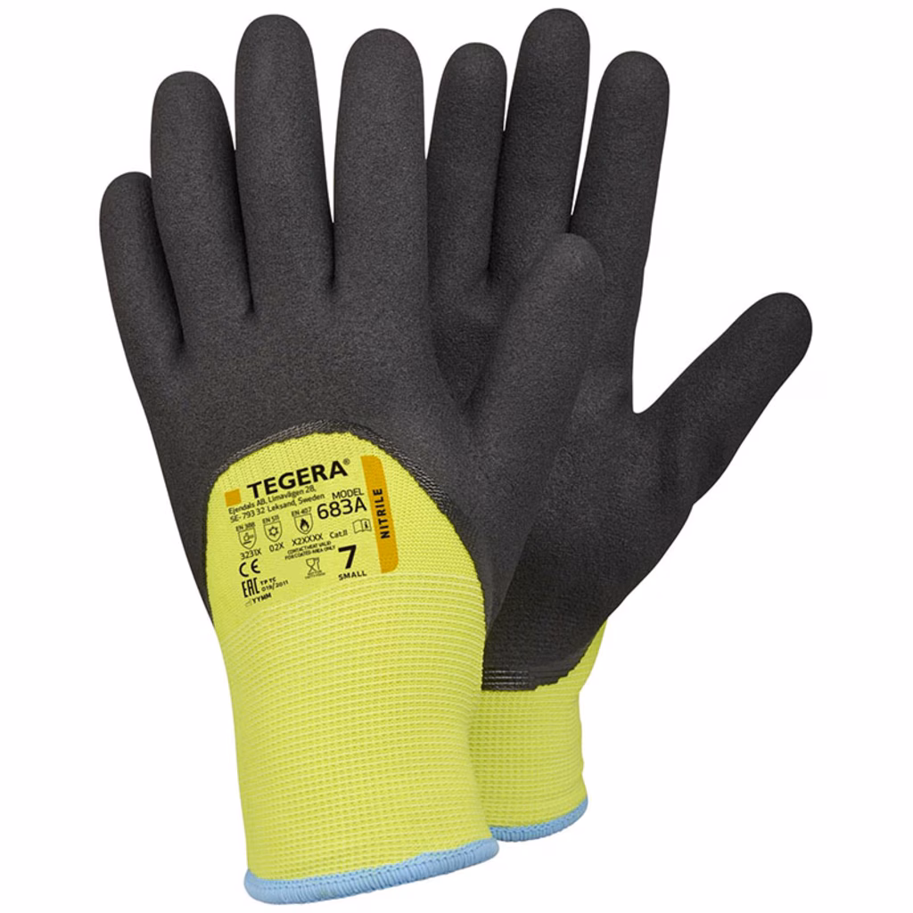TEGERA® 683A, Guanto sintetico, nitrile, rivestimento a 3/4, acrilico, poliestere, 10 aghi, 13 aghi, finitura sabbia, Cat. II, colore ad alta visibilità, palmo e nocche idro e oleorepellenti