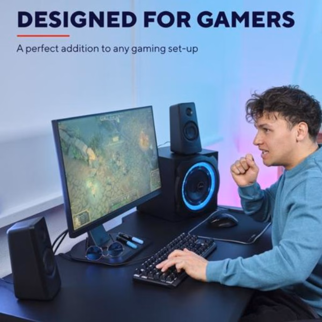 Preparati a dare una scossa alla tua esperienza audio con una potenza di picco di 120 W (60 W RMS) aggiungendo profondità ai film, alla musica e ai giochi.