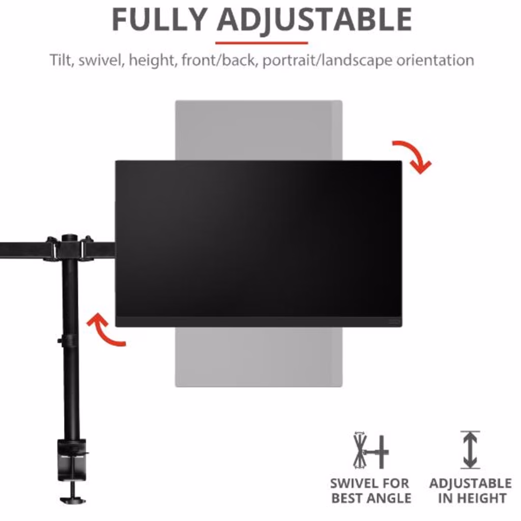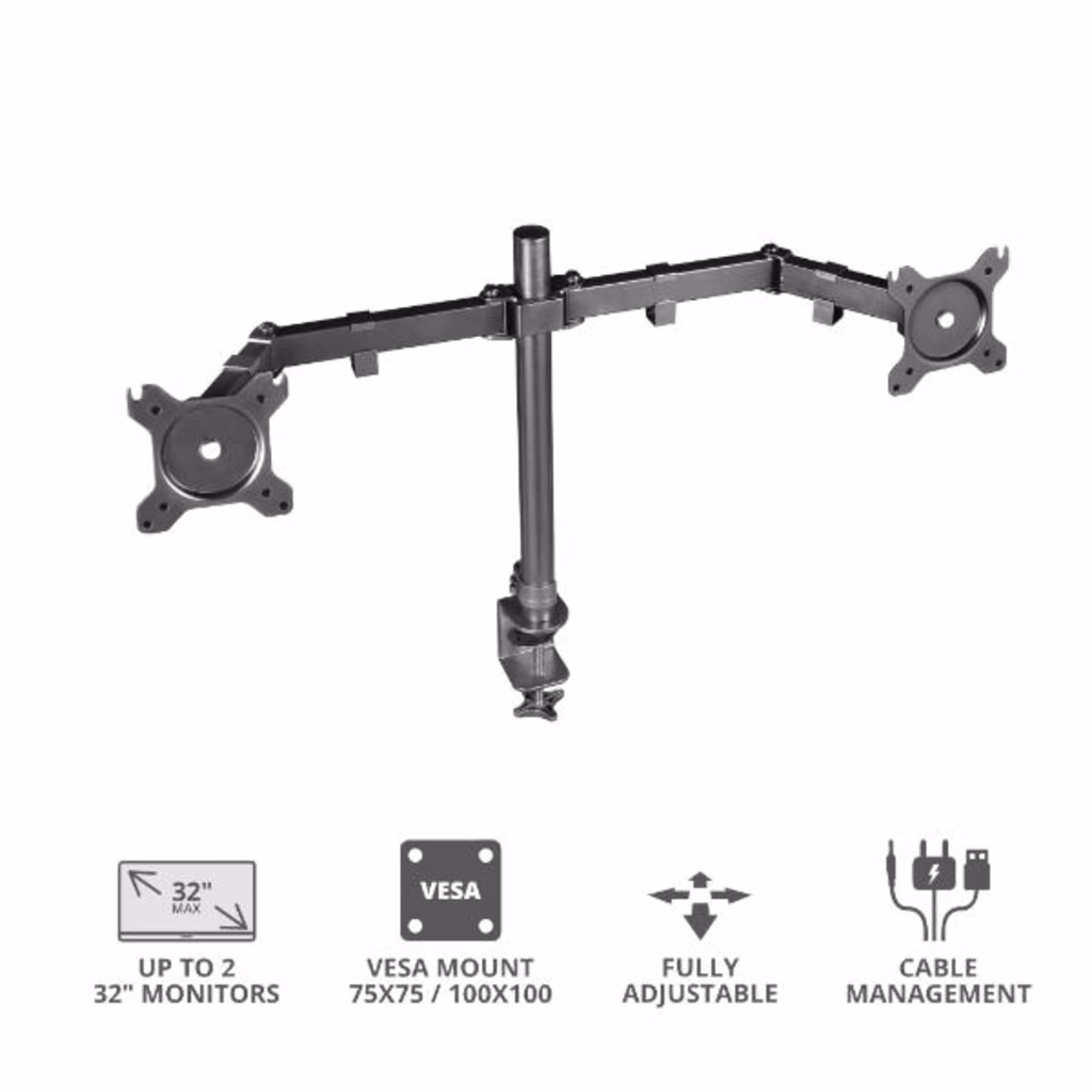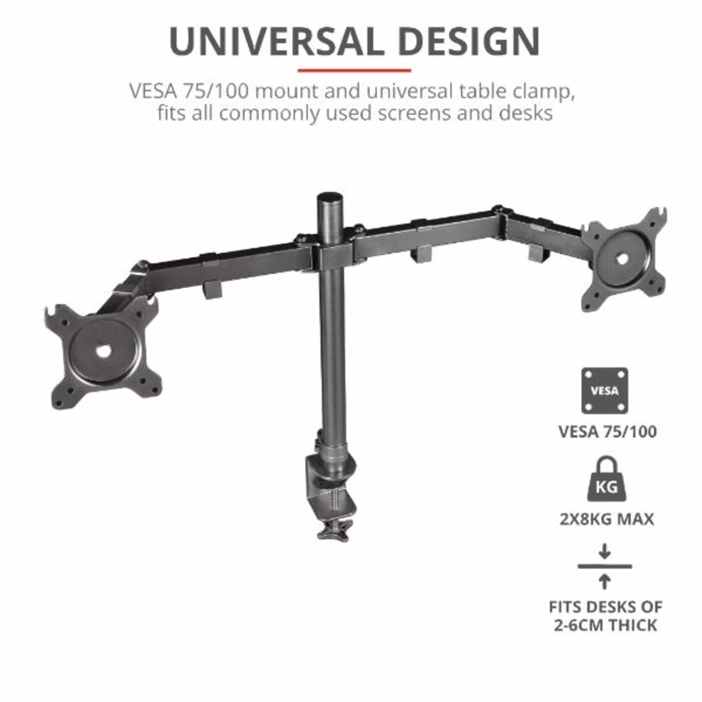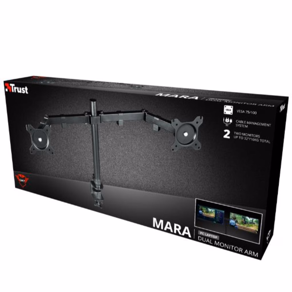 Se ti piace giocare su due monitor o sei appassionato di streaming, Trust GXT 1120 Mara fa proprio al caso tuo. Questa soluzione dual-monitor ti permette di collegare due schermi, ciascuno da 32" al massimo, tenendo la scrivania in ordine grazie al sistema di gestione dei cavi. Avrai tutta la flessibilità necessaria per posizionare i monitor dove preferisci.