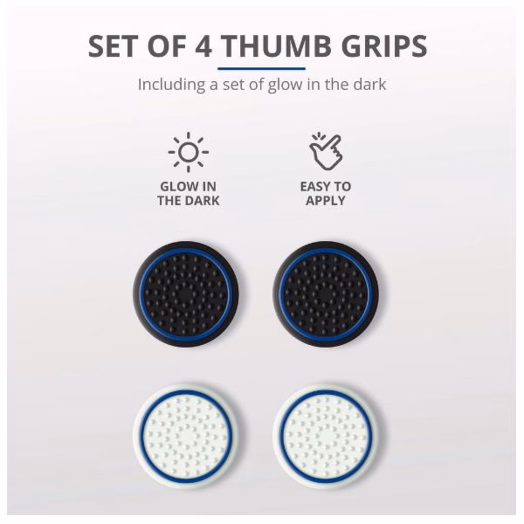 Hai una PlayStation 5 nuova di zecca? Benvenuto nel gaming di ultima generazione! Le impugnature Trust Thumb sono perfette per avere una solida impugnatura sul tuo nuovo controller DualSense. Questo set dispone di 4 impugnature in totale, di cui due brillano nel buio, per migliorare la presa sugli stick.