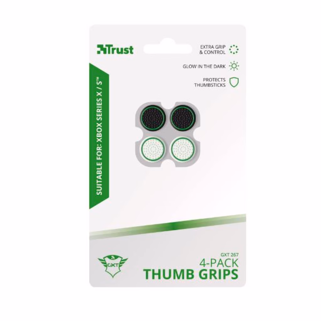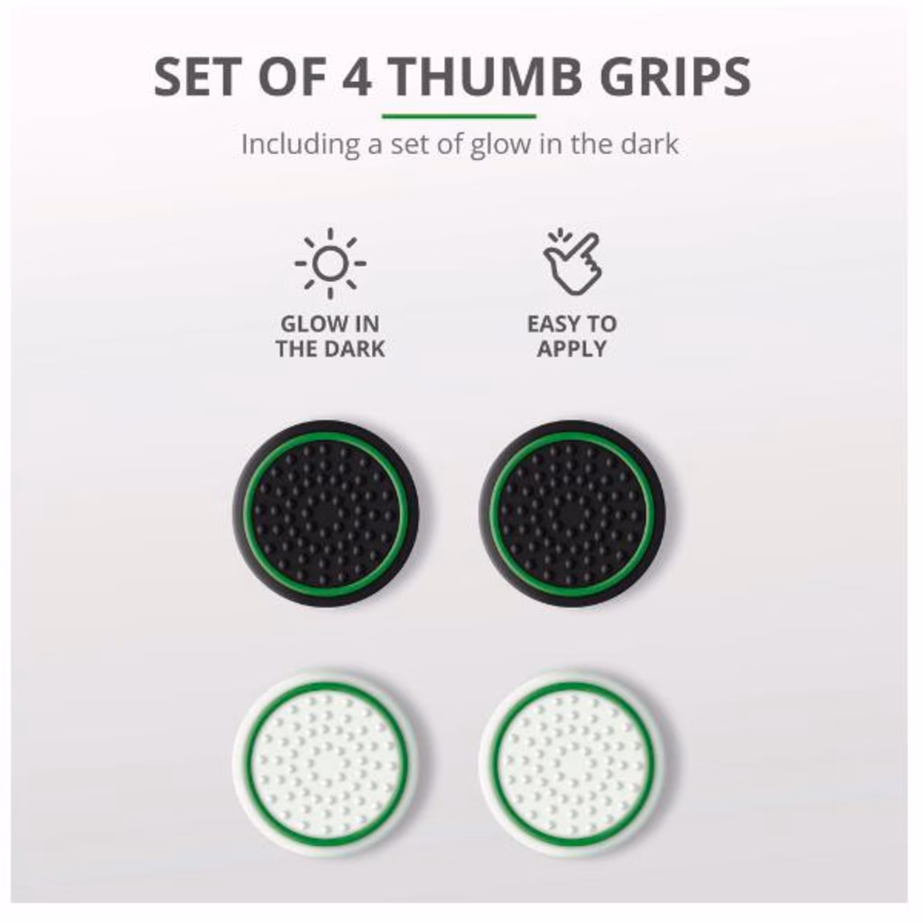 Hai una Xbox Series X o Xbox Series S nuova di zecca? Benvenuto nel gaming di ultima generazione! Le impugnature Trust Thumb sono perfette per avere una solida impugnatura sul tuo nuovo controller DualSense. Questo set dispone di 4 impugnature in totale, di cui due brillano nel buio, per migliorare la presa sugli stick.
