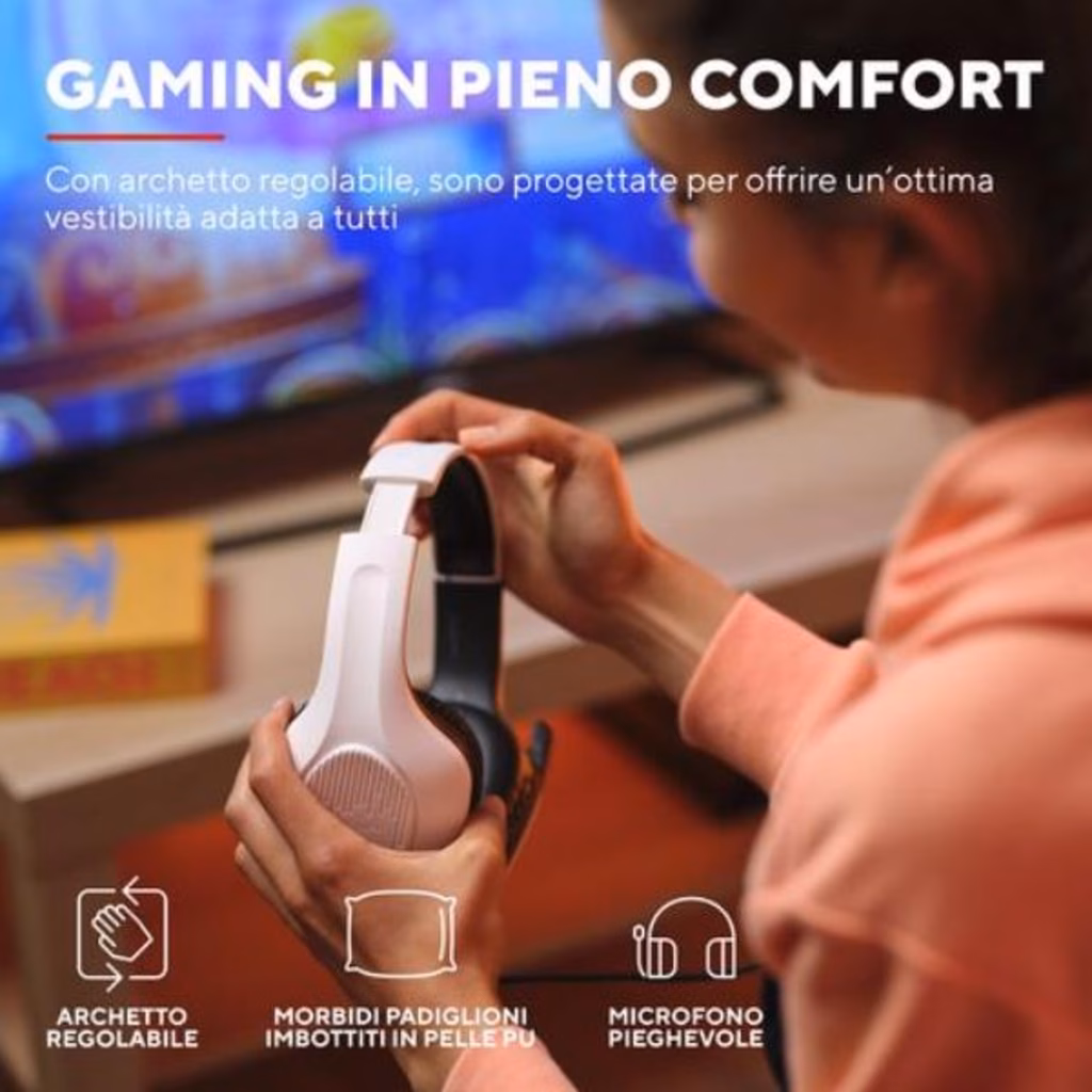 Anche nelle sessioni di gaming più intense, queste cuffie stanno al loro posto. Con archetto regolabile, sono progettate per offrire un ottima vestibilità adatta a tutti.