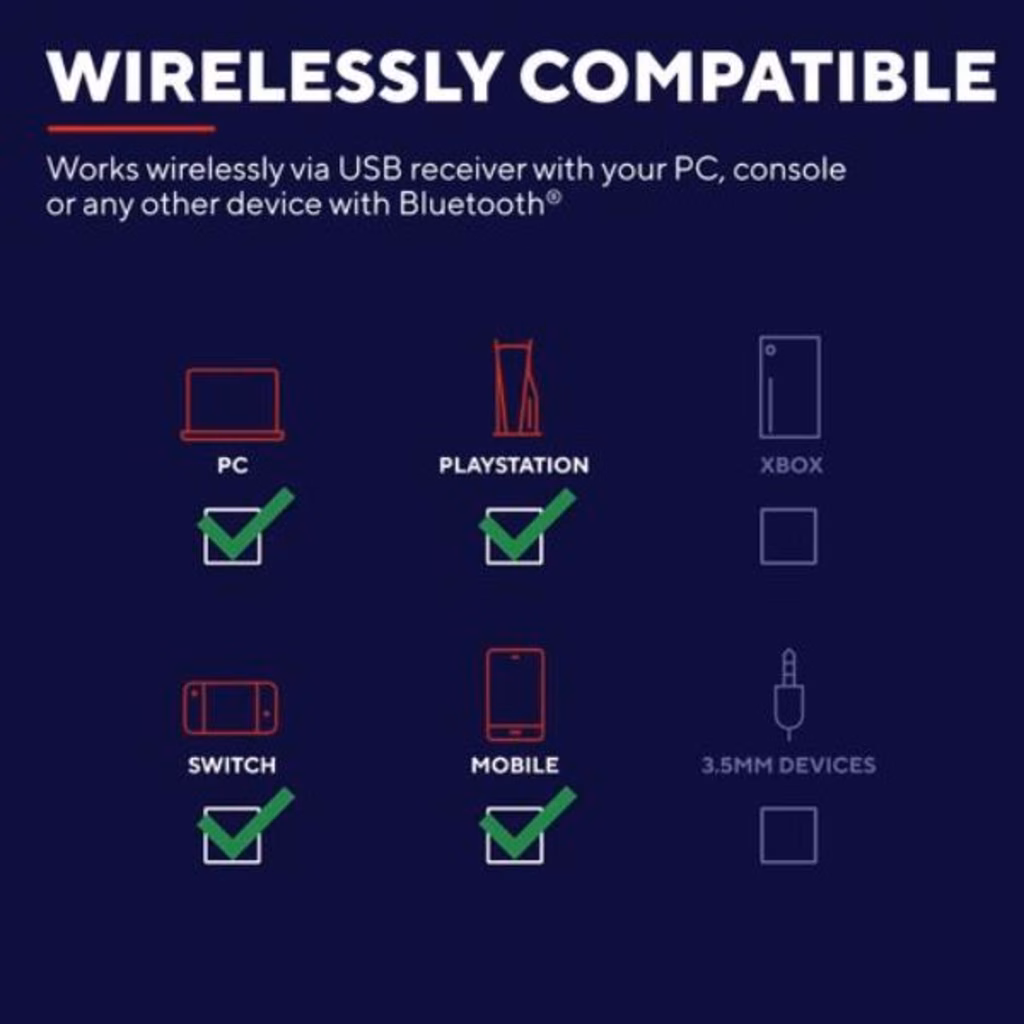 Team PC, Playstation o Switch, Fayzo non teme nulla. Compatibile con diverse piattaforme, ti basta collegarlo a quella che preferisci tramite il dongle USB e/o la connessione Bluetooth e sei pronto!