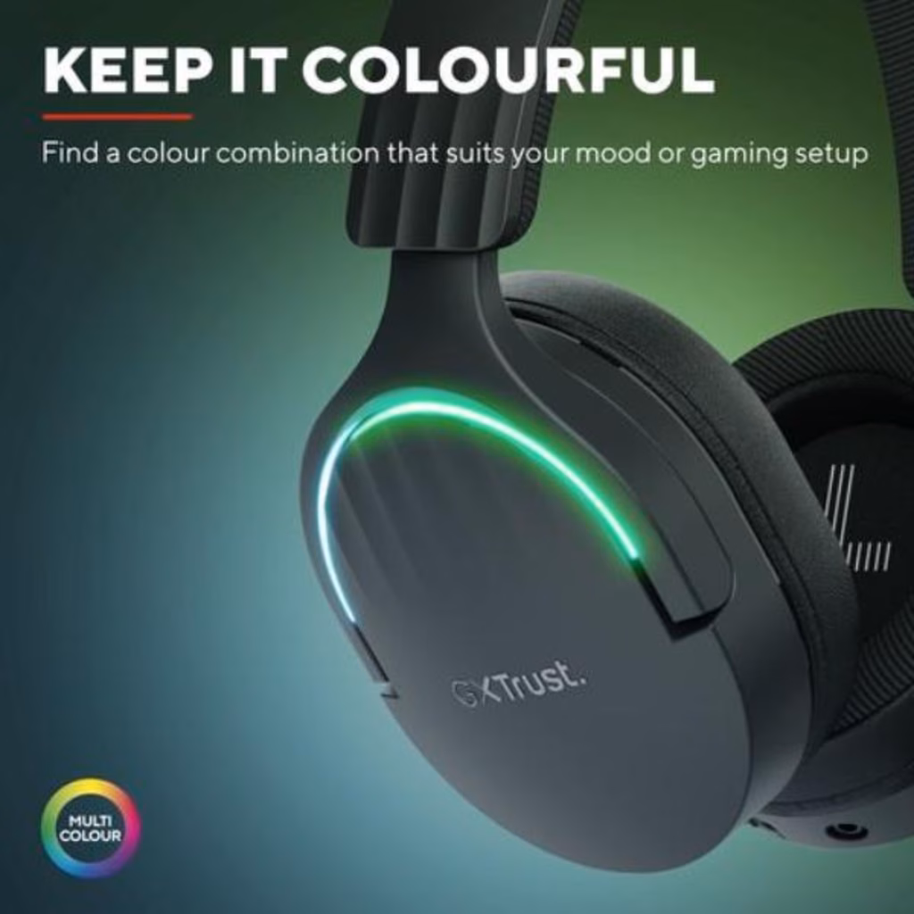 Fai fare un salto di qualità al tuo gaming con queste eleganti cuffie con microfono. Illuminazione RGB multicolore regolabile con tre modalità di colore (più modalità spento) per esprimere il tuo stile quando e come vuoi mentre giochi.