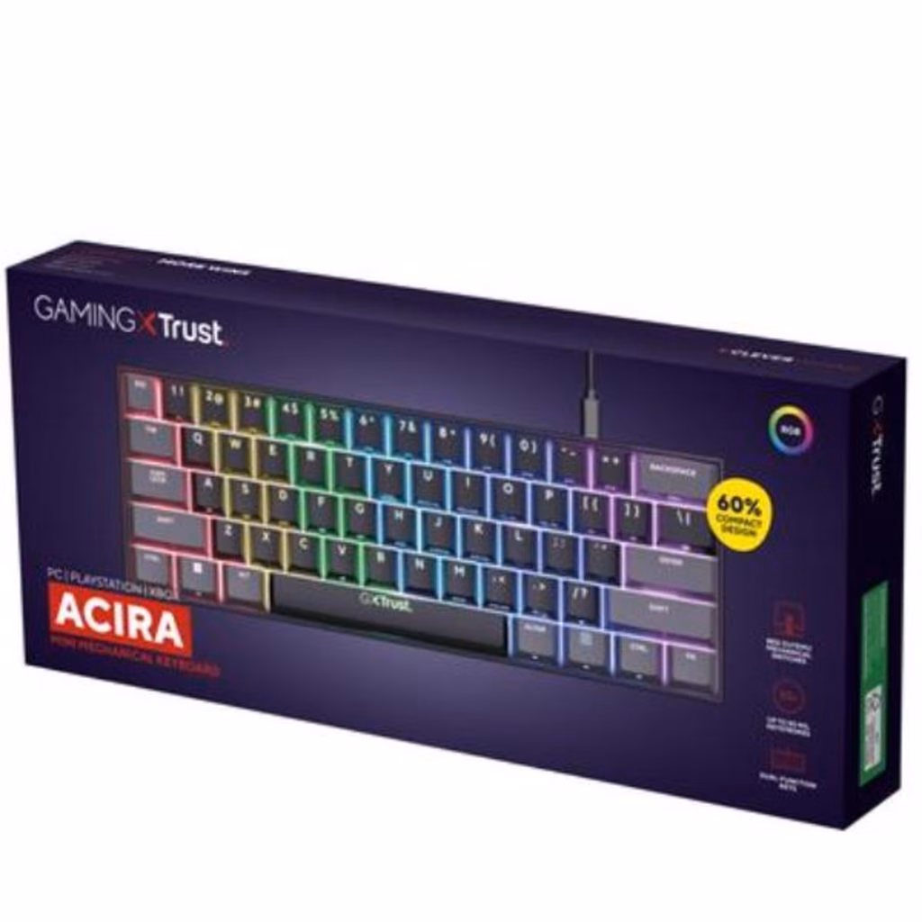 L'Acira sarà anche piccola, ma certamente è potente. Con una forma ultracompatta del 60%, questa mini tastiera ti offre ancora più spazio per il movimento del mouse, oltre a tutte le funzionalità di cui hai bisogno per dominare ogni singolo gioco, solo in una dimensione più piccola e comoda!