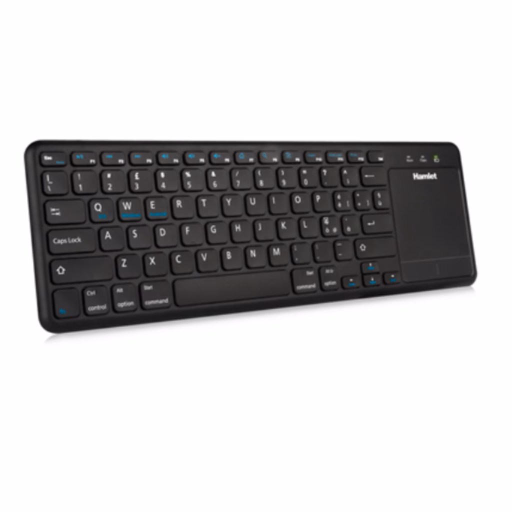 Hamlet XKK40ITA è una tastiera compatta dotata di un pratico touchpad e due pulsanti per il controllo del mouse in grado di comunicare senza fili grazie alla tecnologia wireless RF a 2.4GHz. È la soluzione ideale per controllare comodamente dispositivi come Smart TV, Videoproiettori, Media Center, Computer, Tablet PC e Smartphone. La tastiera funziona con due comuni batterie tipo AAA (incluse)  che garantiscono un prolungato utilizzo del dispositivo e include un nano ricevitore USB per il collegamento senza fili al computer o dispositivo da utilizareCaratteristiche