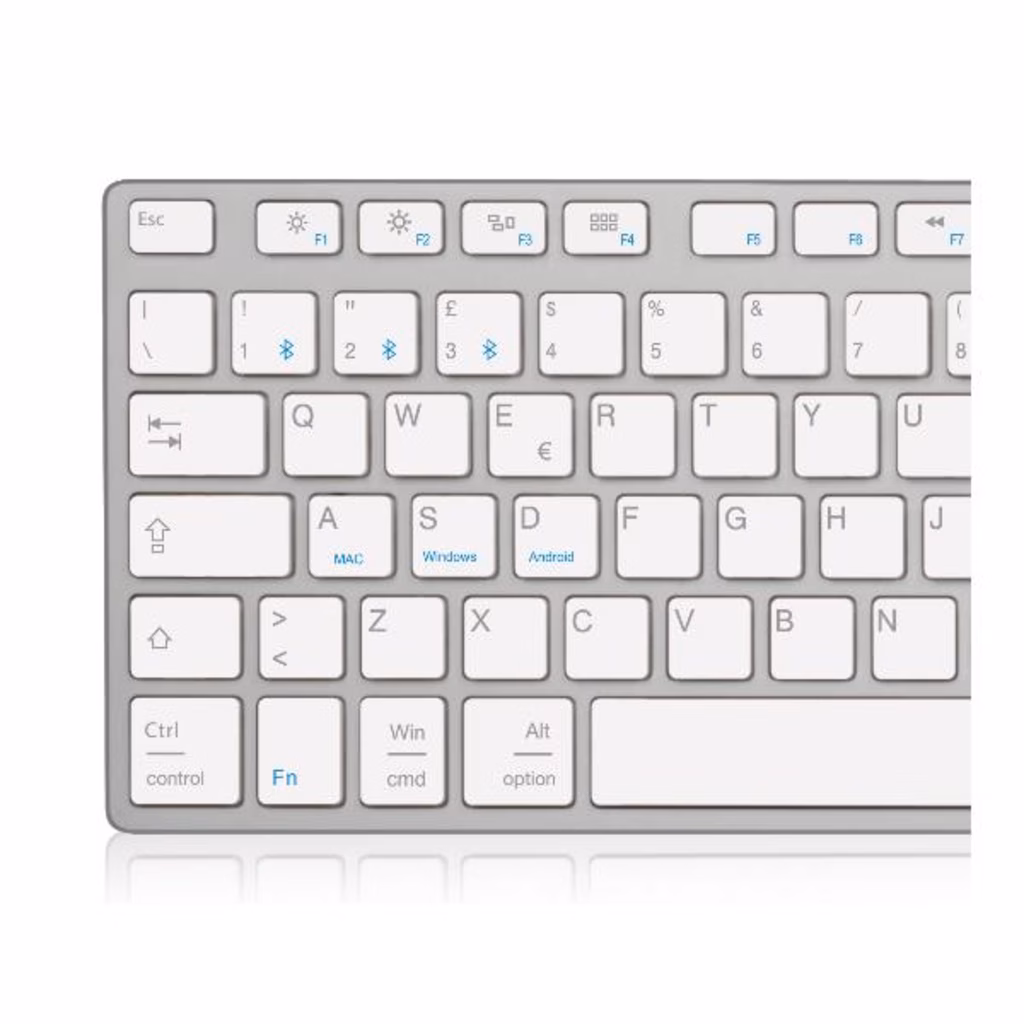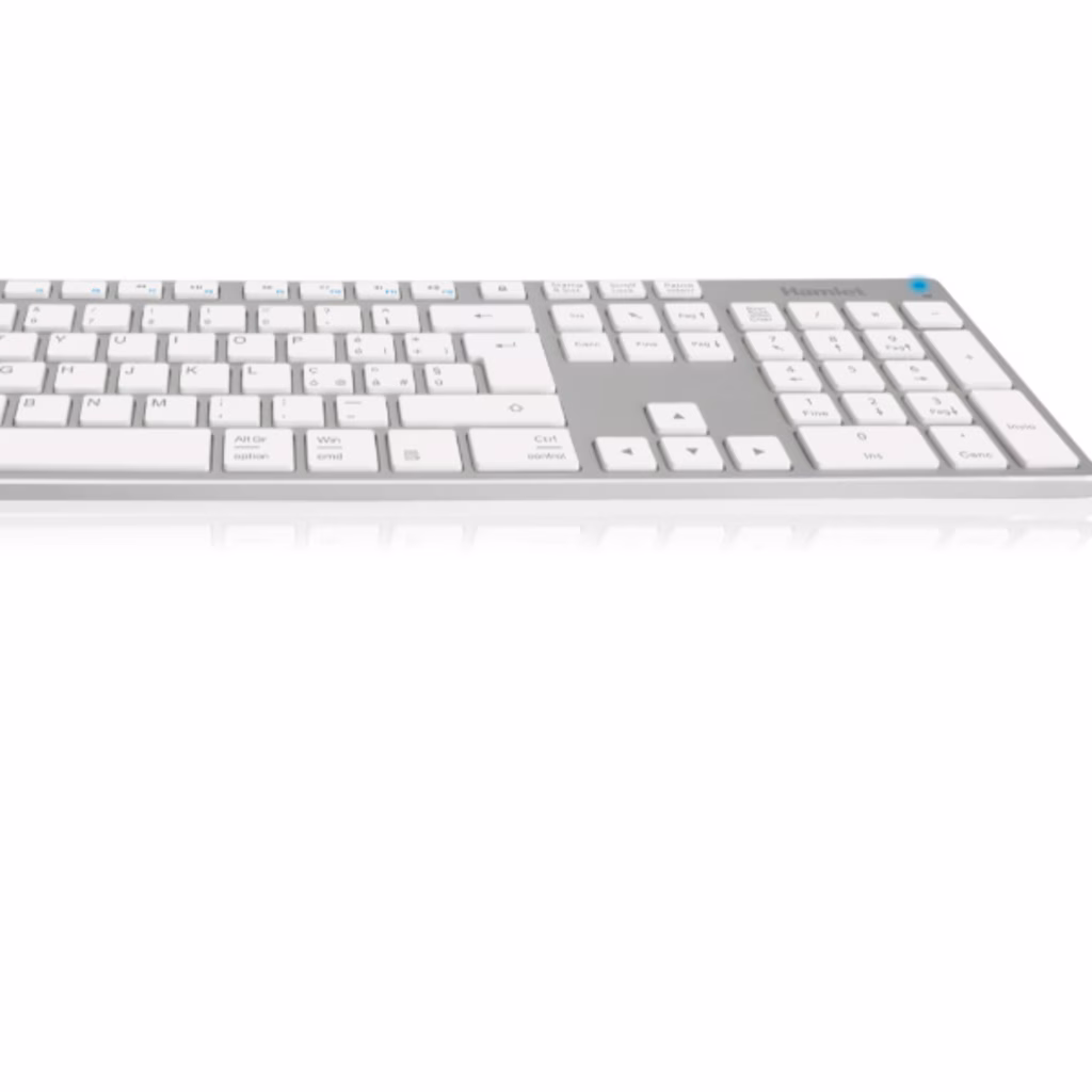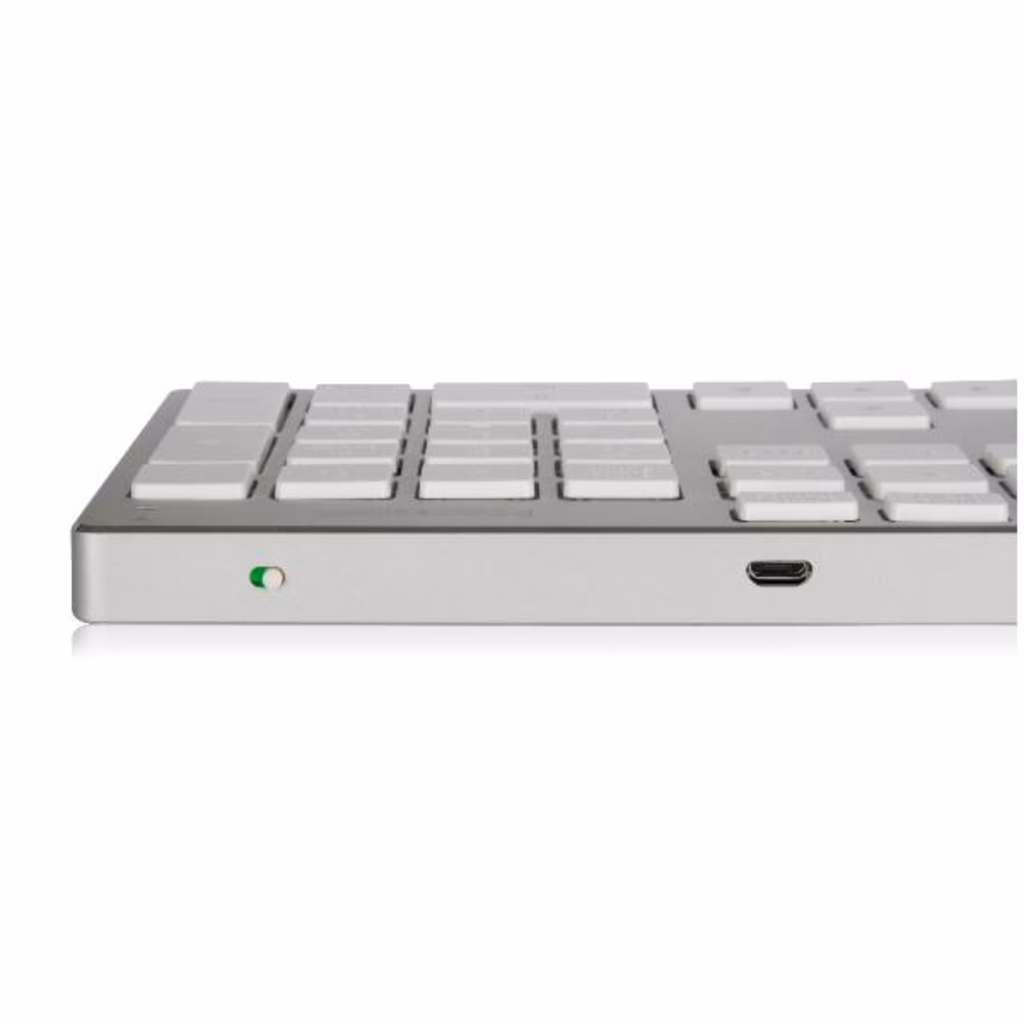 Silver Board Bluetooth è una tastiera wireless estesa con layout Italiano caratterizzata da un elegante design in alluminio. I tasti silenziosi a basso profilo sono studiati per un impiego confortevole e il meccanismo costruttivo a forbice garantisce una digitazione rapida e accurata. Il tastierino numerico è l'ideale per i fogli di calcolo e l'inserimento dati mentre la connessione senza fili Bluetooth permette una facile installazione tenendo la scrivania in ordine e libera da cavi. Silver Board Bluetooth ha un layout universale compatibile con Windows, Mac e Android. I tasti di configurazione Bluetooth permettono di collegare fino a tre diversi dispositivi e passare da uno all'altro premendo semplicemente un tasto.caratteristiche