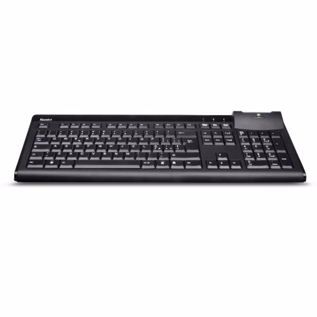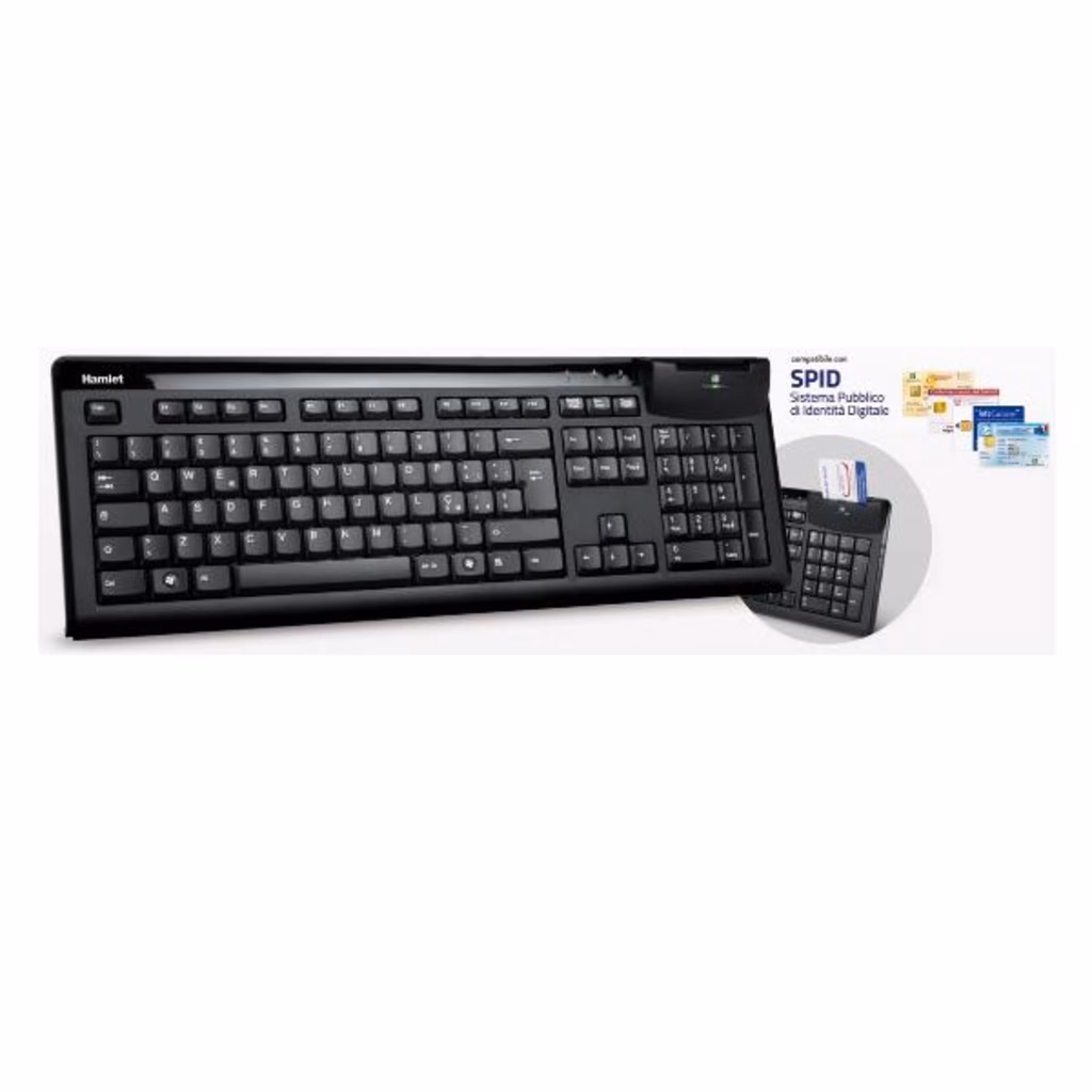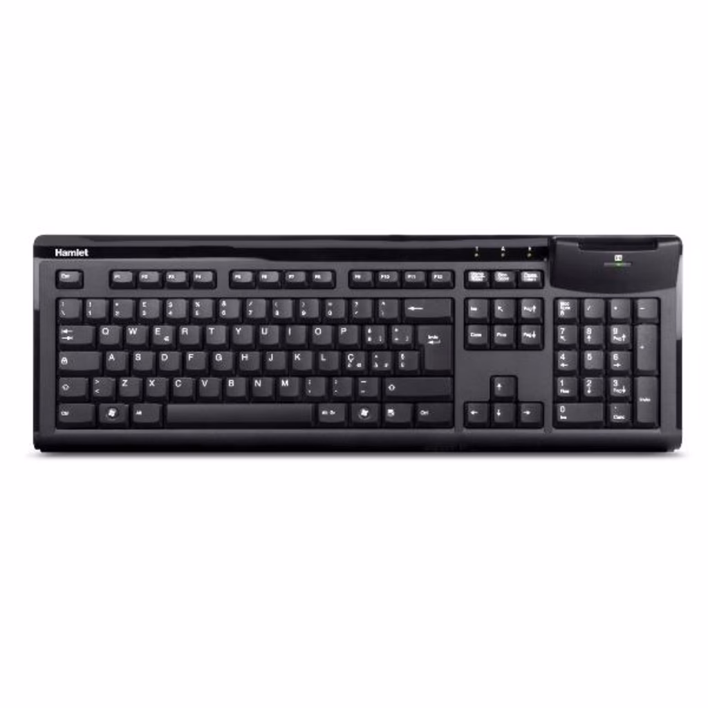 Smart Card Keyboard di Hamlet è una tastiera professionale studiata per un impiego confortevole e durevole nel tempo grazie ai tasti silenziosi a basso profilo, piedini pieghevoli robusti e supporti antiscivolo per una corretta inclinazione. Il lettore di Smart Card integrato permette di utilizzare la firma digitale per eseguire transazioni in ambiente sicuro sia su reti pubbliche che private. Smart Card Keyboard funziona con le smart card conformi allo standard ISO 7816 e supporta gli standard PC/SC 2.0 e USB-IF CCID. Grazie all'interfaccia USB Plug & Play è compatibile con qualsiasi computer e notebook. Certificazioni Microsoft WHQL e EMV.