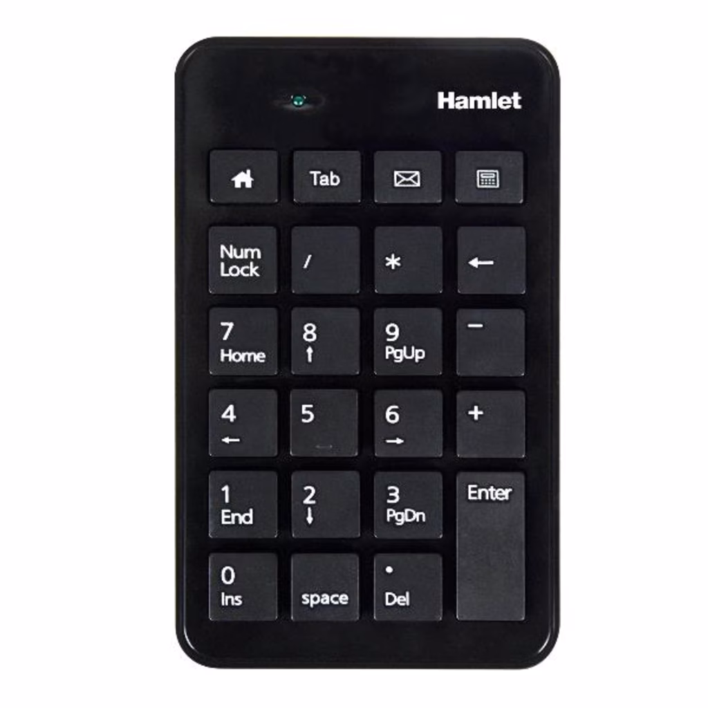 Hamlet Numeric Keypad è l'accessorio ideale per tutti coloro che non vogliono rinunciare alle comodità del tastierino numerico utilizzando il proprio notebook. La connessione USB e la semplice installazione plug and play consentono di utilizzare immediatamente il dispositivo collegandolo ad una porta USB del computer senza bisogno di installare alcun driver. Il design minimale e la colorazione nera lo rendono il compagno ideale per la maggior parte dei portatili e dei desktop in commercio e grazie alle dimensioni contenute risulta facile da trasportare.